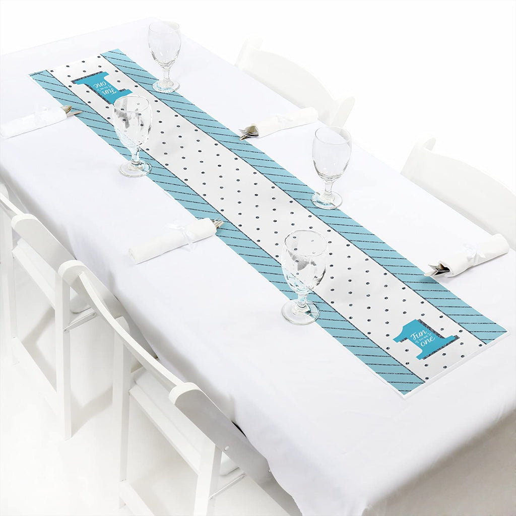 Fun to be One - 1st Birthday Boy - Petite First Birthday Party Paper Table Runner - 12 x 60 inches