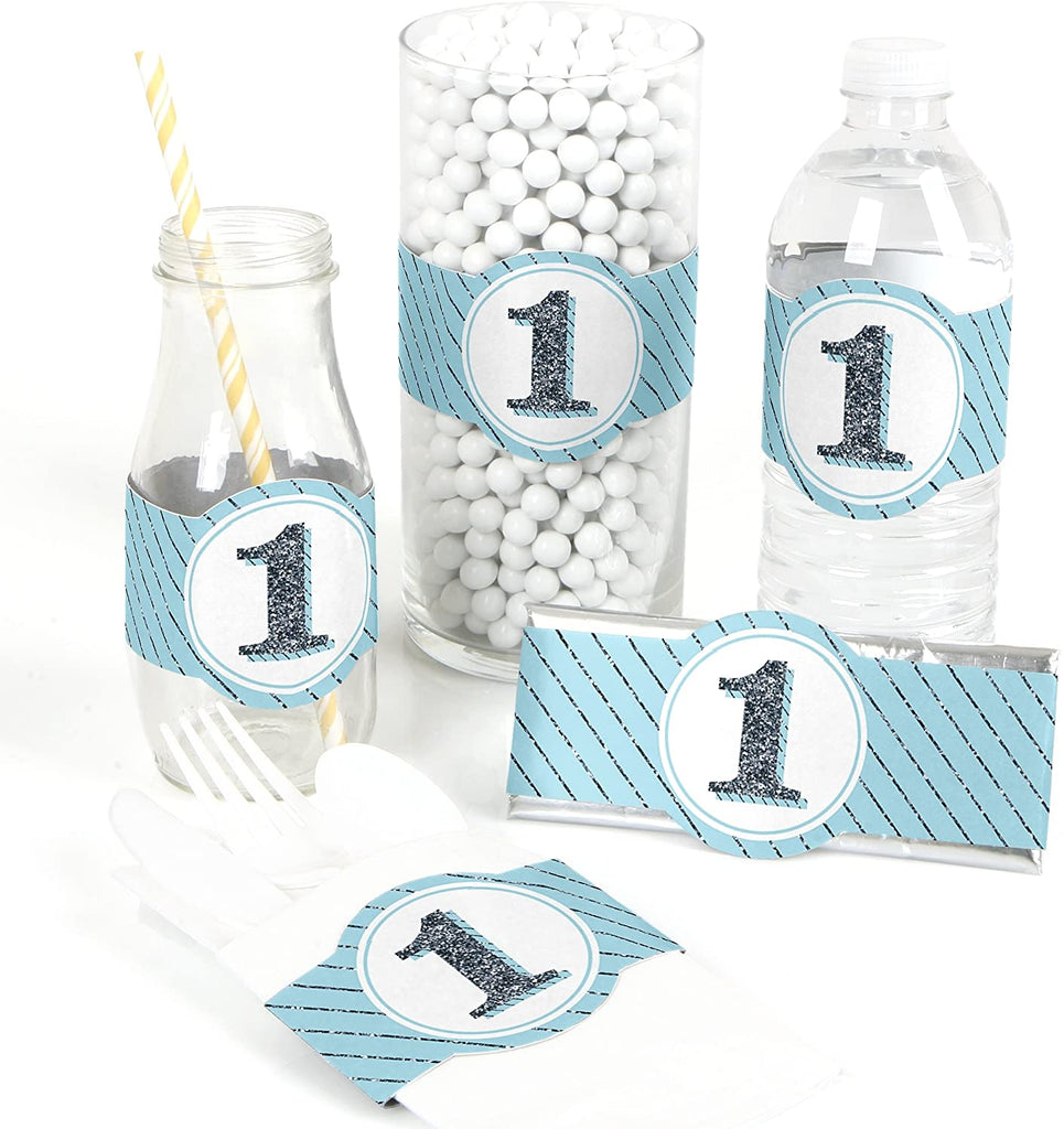 1st Birthday Boy - Fun to be One - Mini Candy Bar Wrapper Stickers - First Birthday Party Small Favors - 40 Count