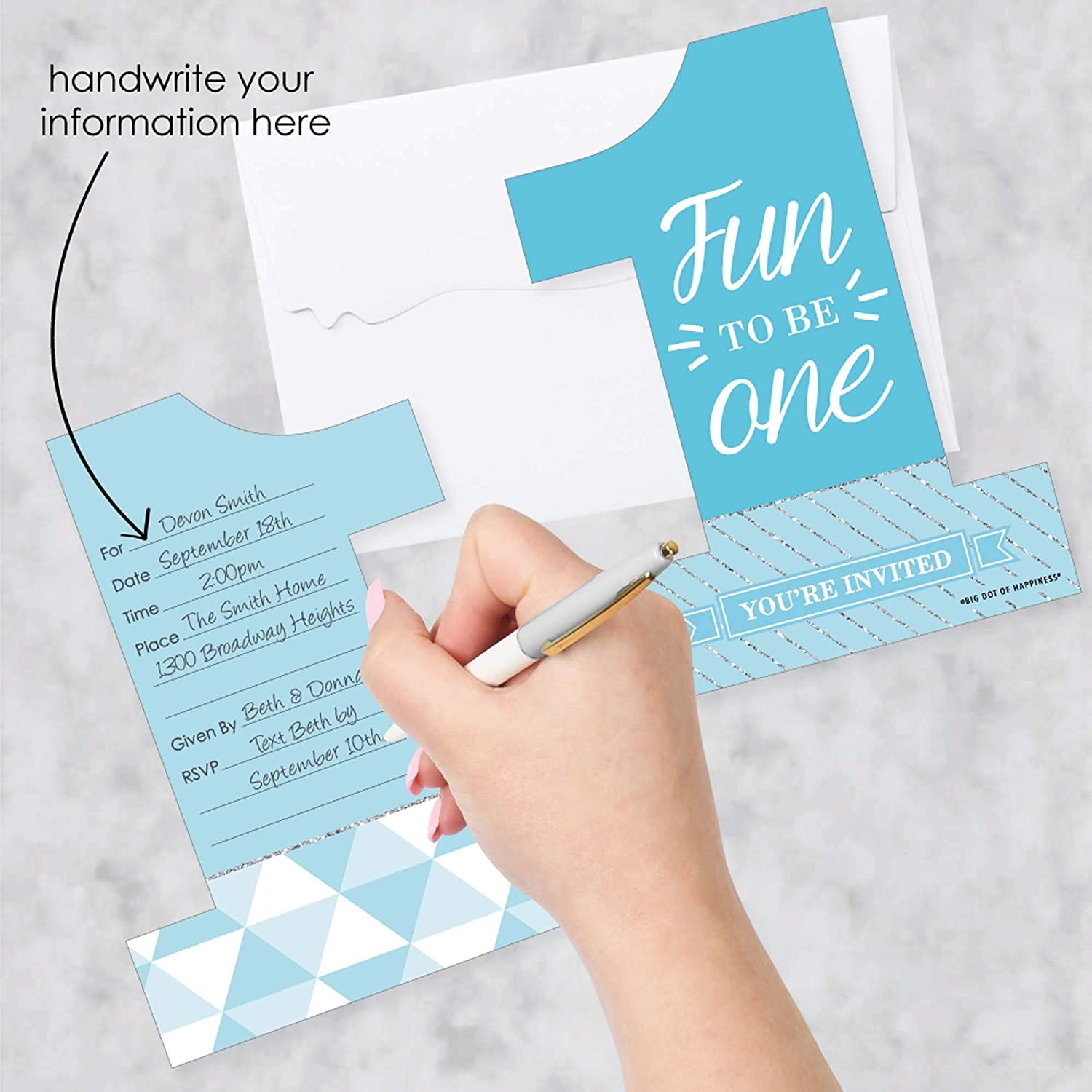 1st Birthday Boy - Fun To Be One - Shaped Fill-In Invitations - First Birthday Party Invitation Cards with Envelopes - Set of 12 is backordered and will ship as soon as it is back in stock.