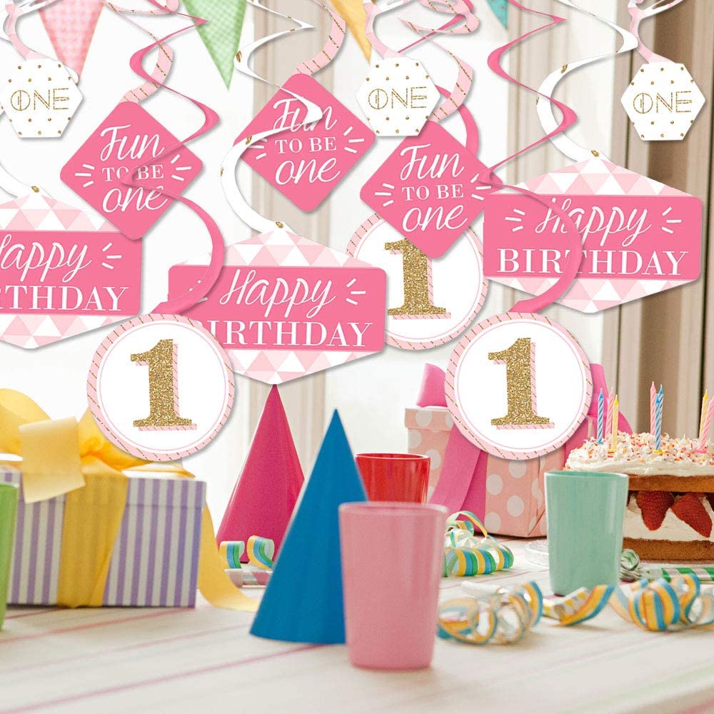 1st Birthday Girl - Fun to be One - First Birthday Party Hanging Decor - Party Decoration Swirls - Set of 40 is backordered and will ship as soon as it is back in stock.