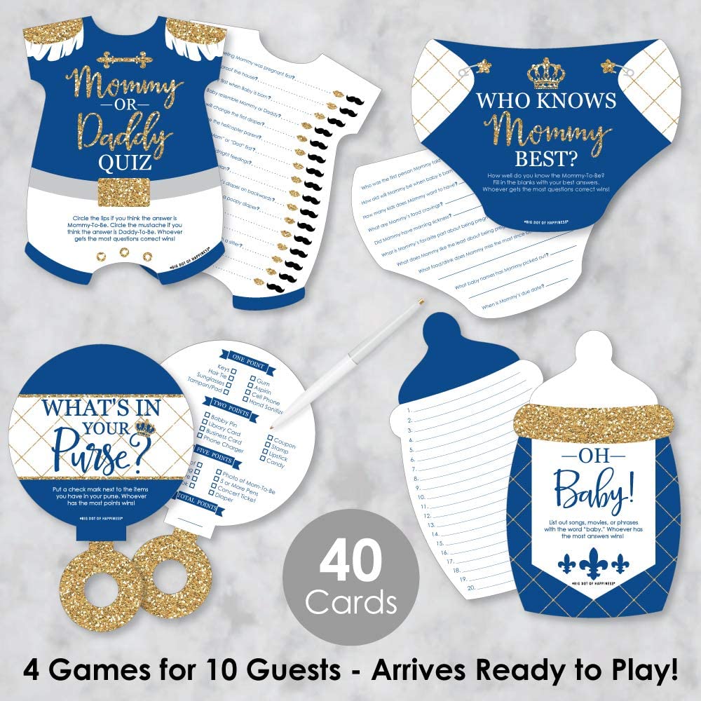 Royal Prince Charming - 4 Baby Shower Games - 10 Cards Each - Who Knows Mommy Best, Mommy or Daddy Quiz, What’s in Your Purse and Oh Baby - Gamerific Bundle is backordered and will ship as soon as it is back in stock.