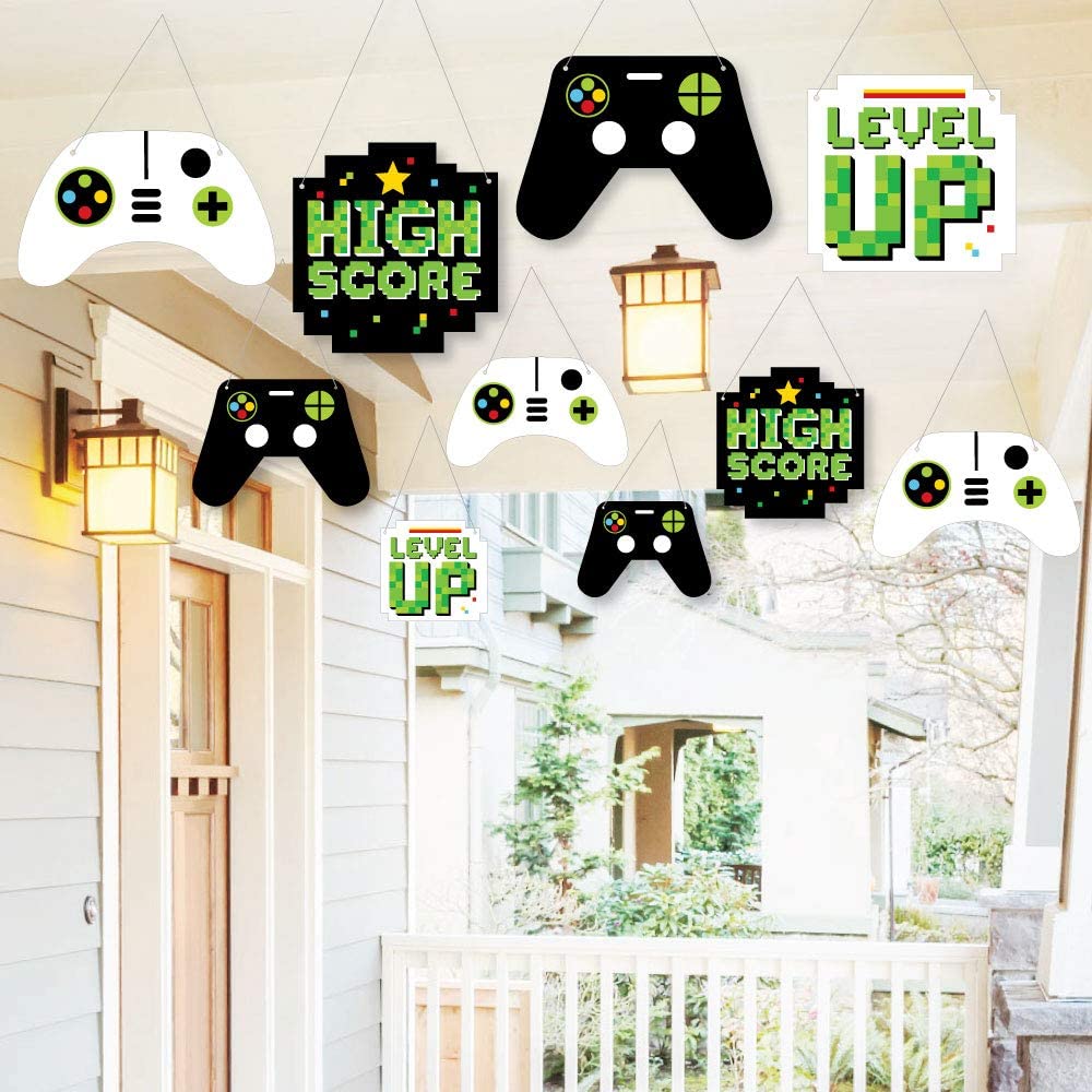 Hanging Game Zone - Outdoor Pixel Video Game Party or Birthday Party Hanging Porch and Tree Yard Decorations - 10 Pieces is backordered and will ship as soon as it is back in stock.
