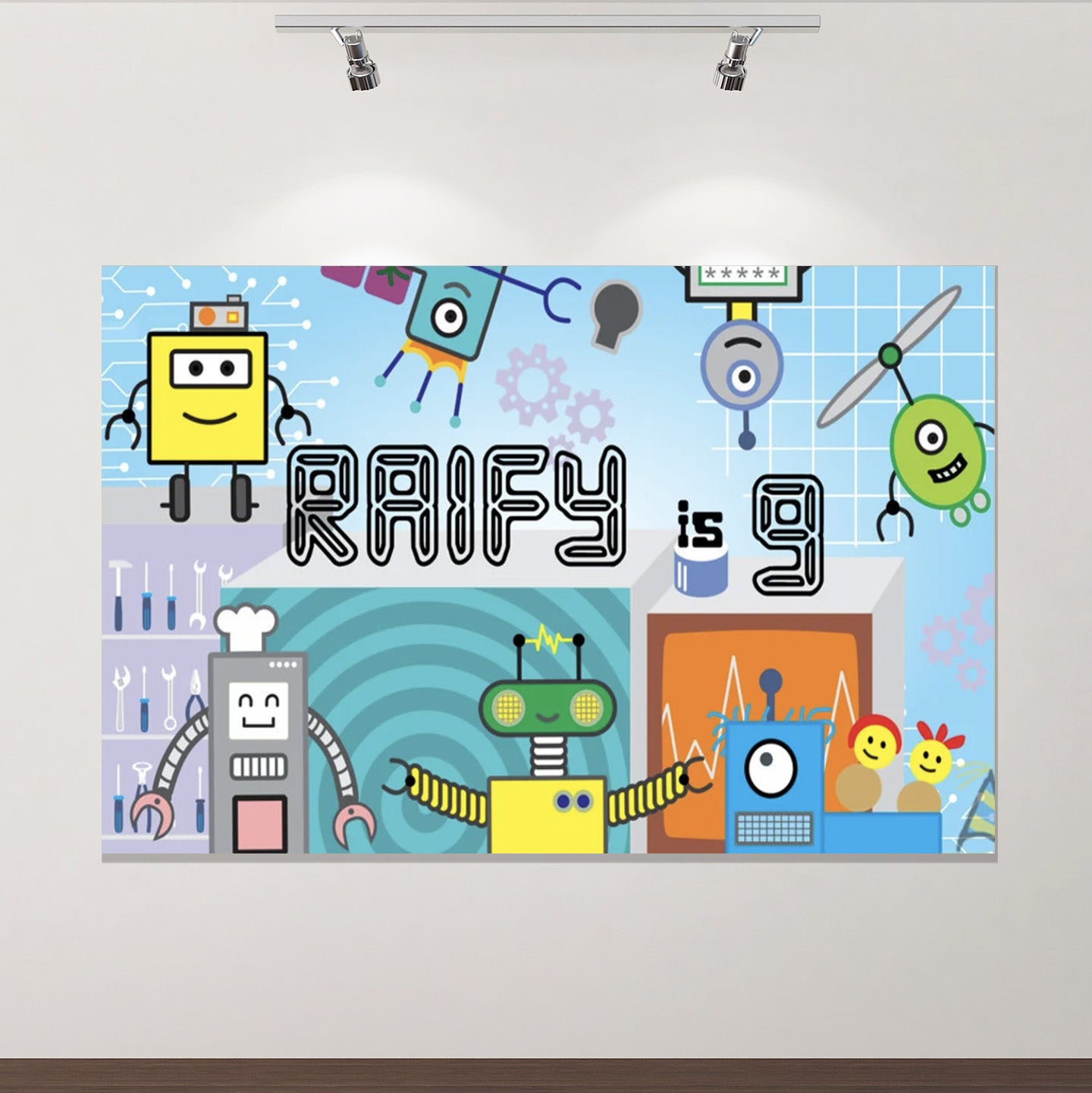 Custom Robot themed Birthday Poster Backdrop 60x40 Inch is backordered and will ship as soon as it is back in stock.