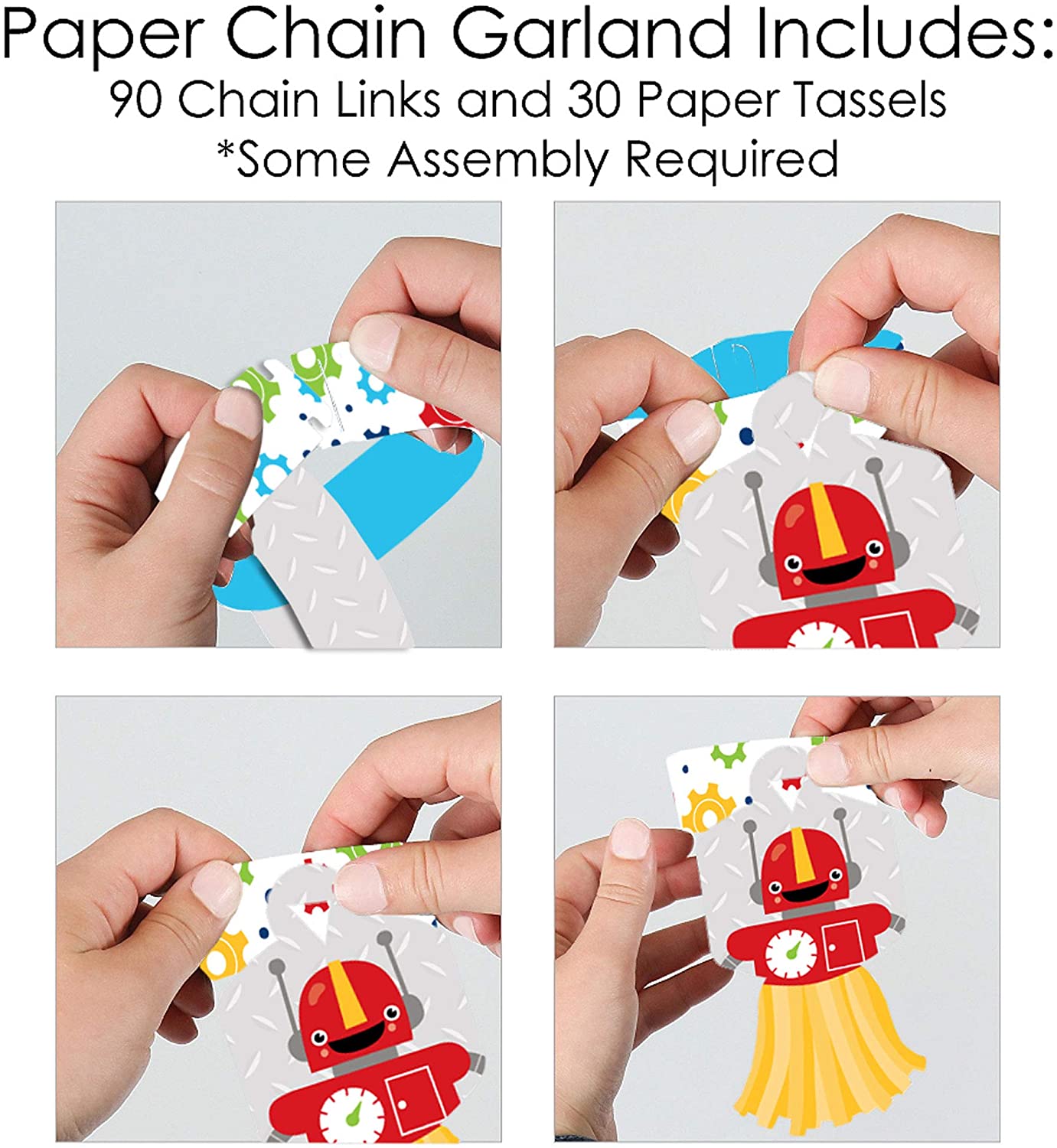 Gear Up Robots - 90 Chain Links and 30 Paper Tassels Decoration Kit - Birthday Party or Baby Shower Paper Chains Garland - 21 feet is backordered and will ship as soon as it is back in stock.