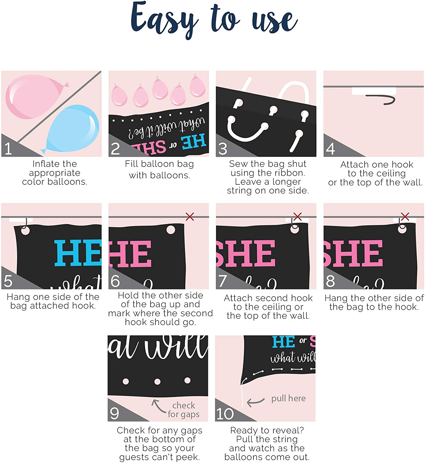 Gender Reveal Balloon Drop Bag | Blue or Pink? is backordered and will ship as soon as it is back in stock.