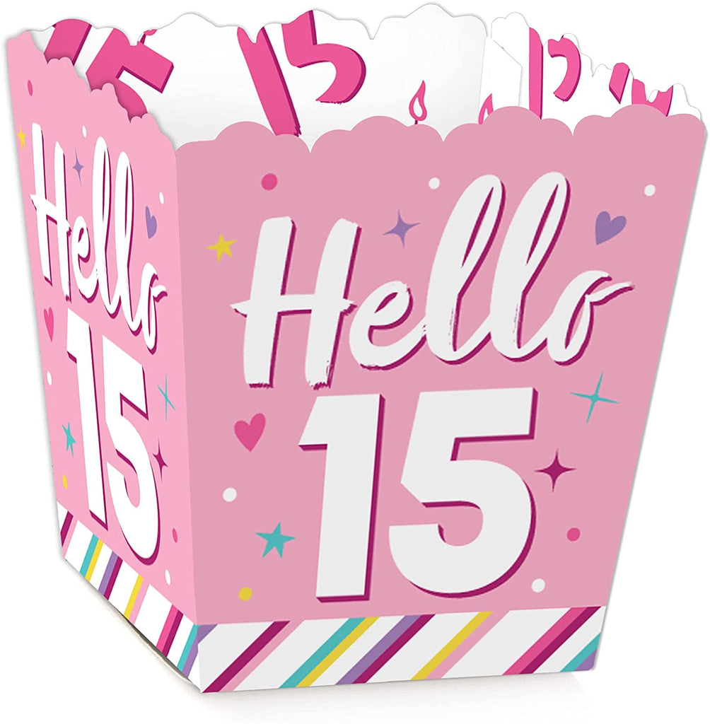 Girl 15th Birthday - Teen Birthday Party Favor Popcorn Treat Boxes - Set of 12