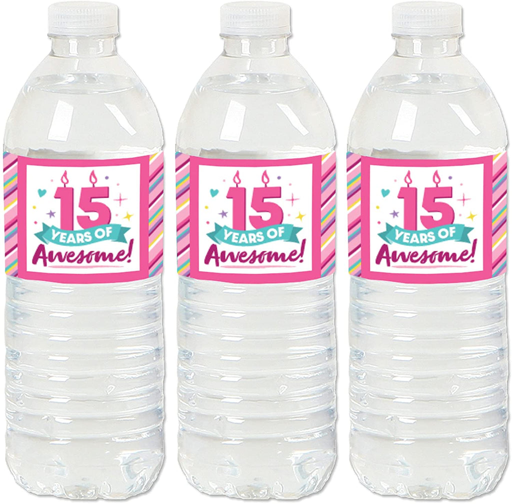 Girl 15th Birthday - Teen Birthday Party Water Bottle Sticker Labels - Set of 20