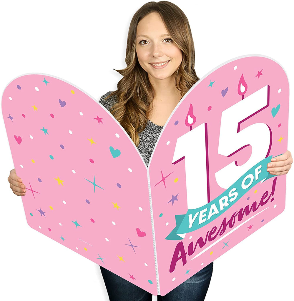 Girl 15th Birthday - Custom Happy Birthday Giant Greeting Card - Personalized Big Shaped Jumborific Card - 16.5 x 22 inches