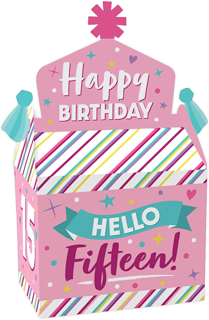 Girl 15th Birthday - Treat Box Party Favors - Teen Birthday Party Goodie Gable Boxes - Set of 12