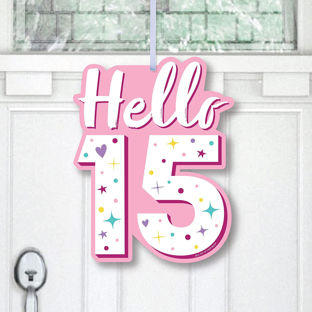 Girl 15th Birthday - Hanging Porch Teen Birthday Party Outdoor Decorations - Front Door Decor - 1 Piece Sign