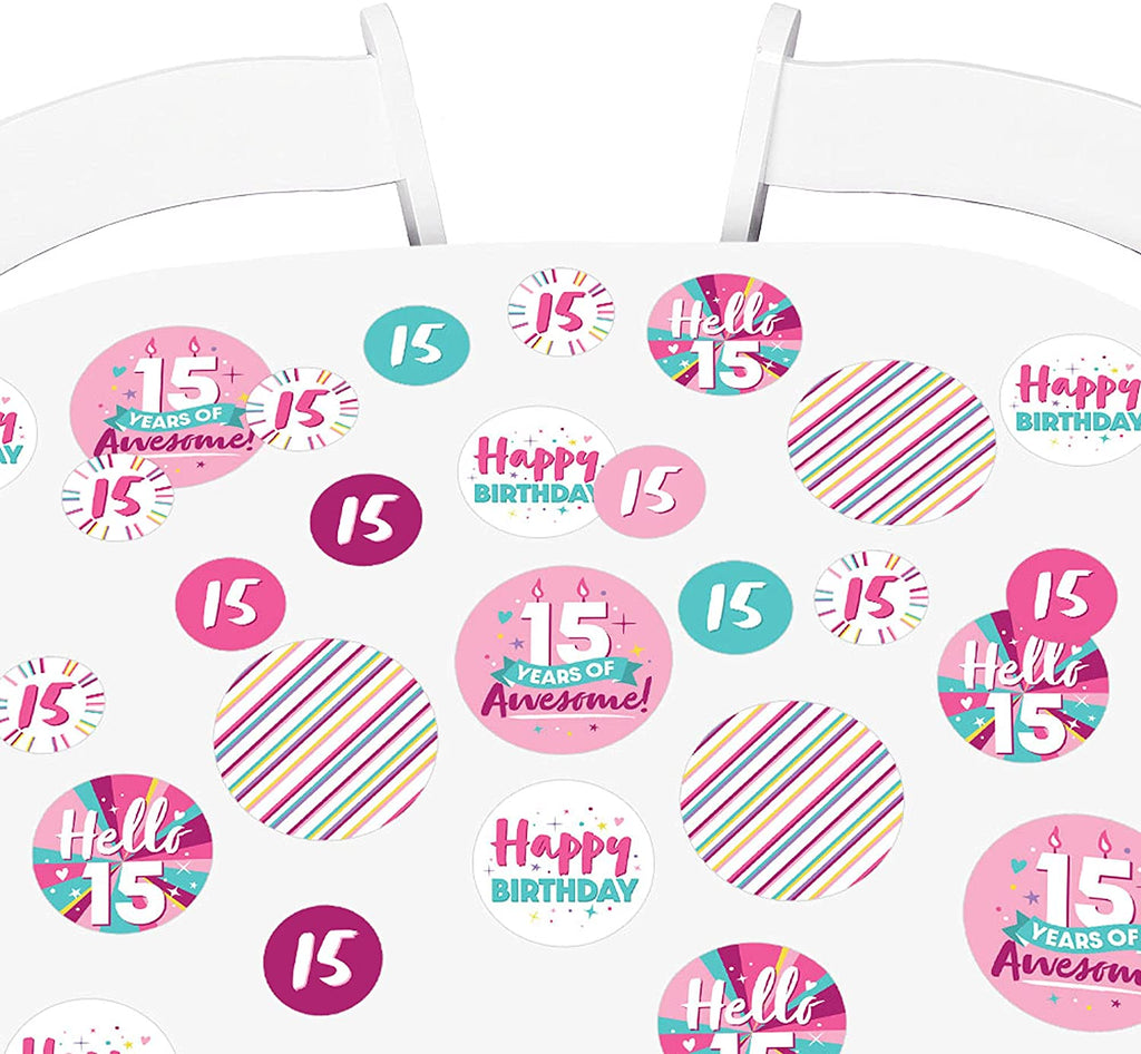 Girl 15th Birthday - Teen Birthday Party Giant Circle Confetti - Party Decorations - Large Confetti 27 Count