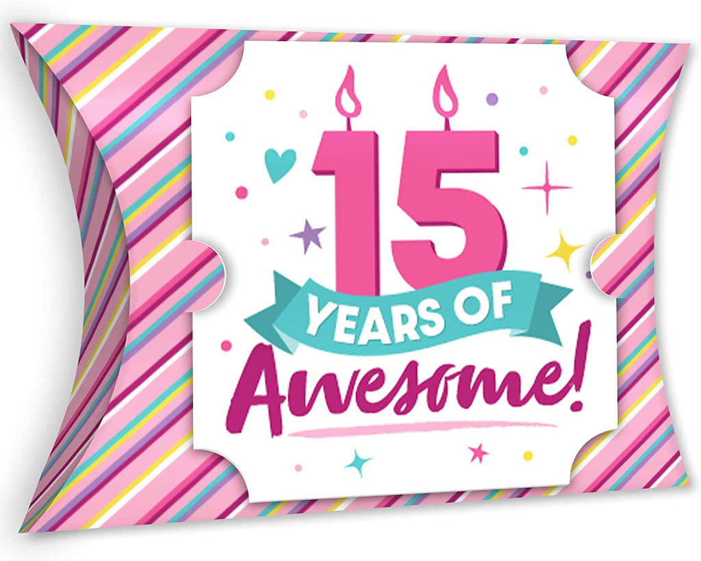 Girl 15th Birthday - Favor Gift Boxes - Teen Birthday Party Large Pillow Boxes - Set of 12