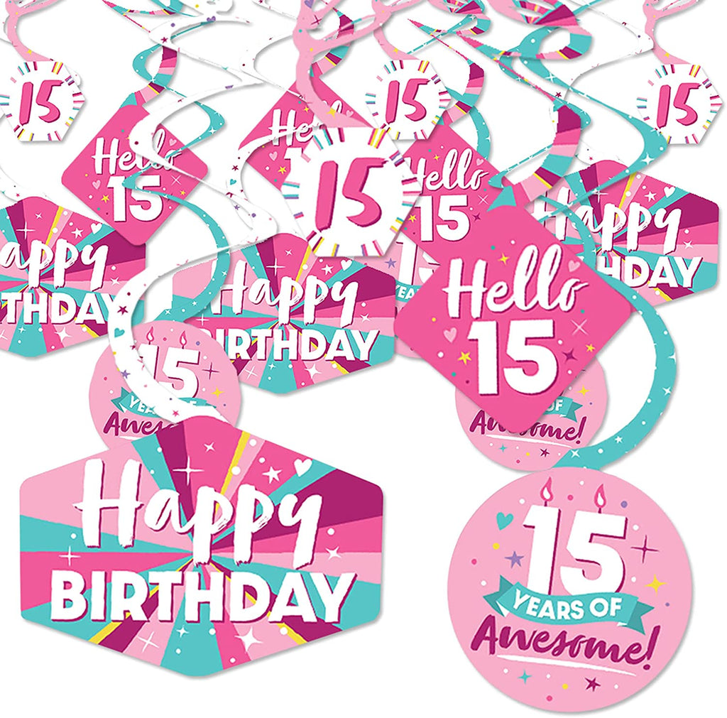 Girl 15th Birthday - Teen Birthday Party Hanging Decor - Party Decoration Swirls - Set of 40