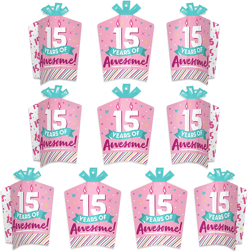 Girl 15th Birthday - Table Decorations - Teen Birthday Party Fold and Flare Centerpieces - 10 Count