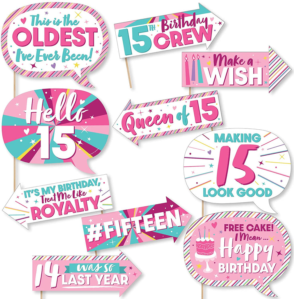 Girl 15th Birthday - Teen Birthday Party Photo Booth Props Kit - 20 Count