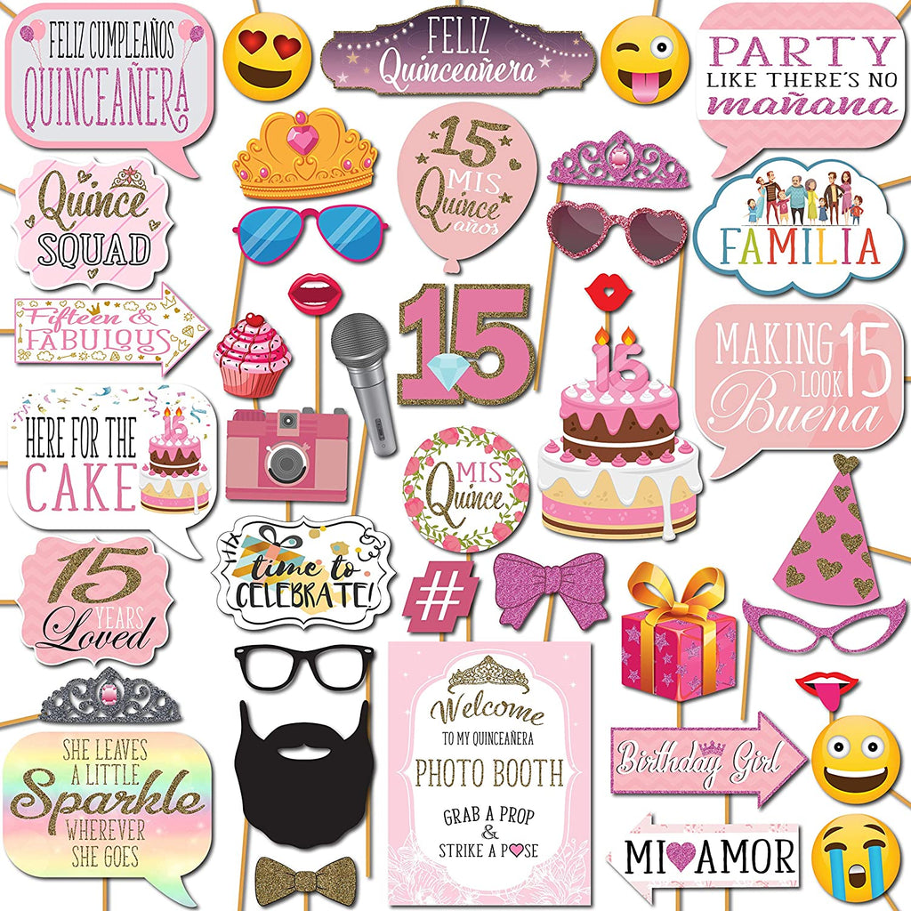 PB310 Quinceanera Sweet 15th Birthday Photo Booth Props 41 Pieces