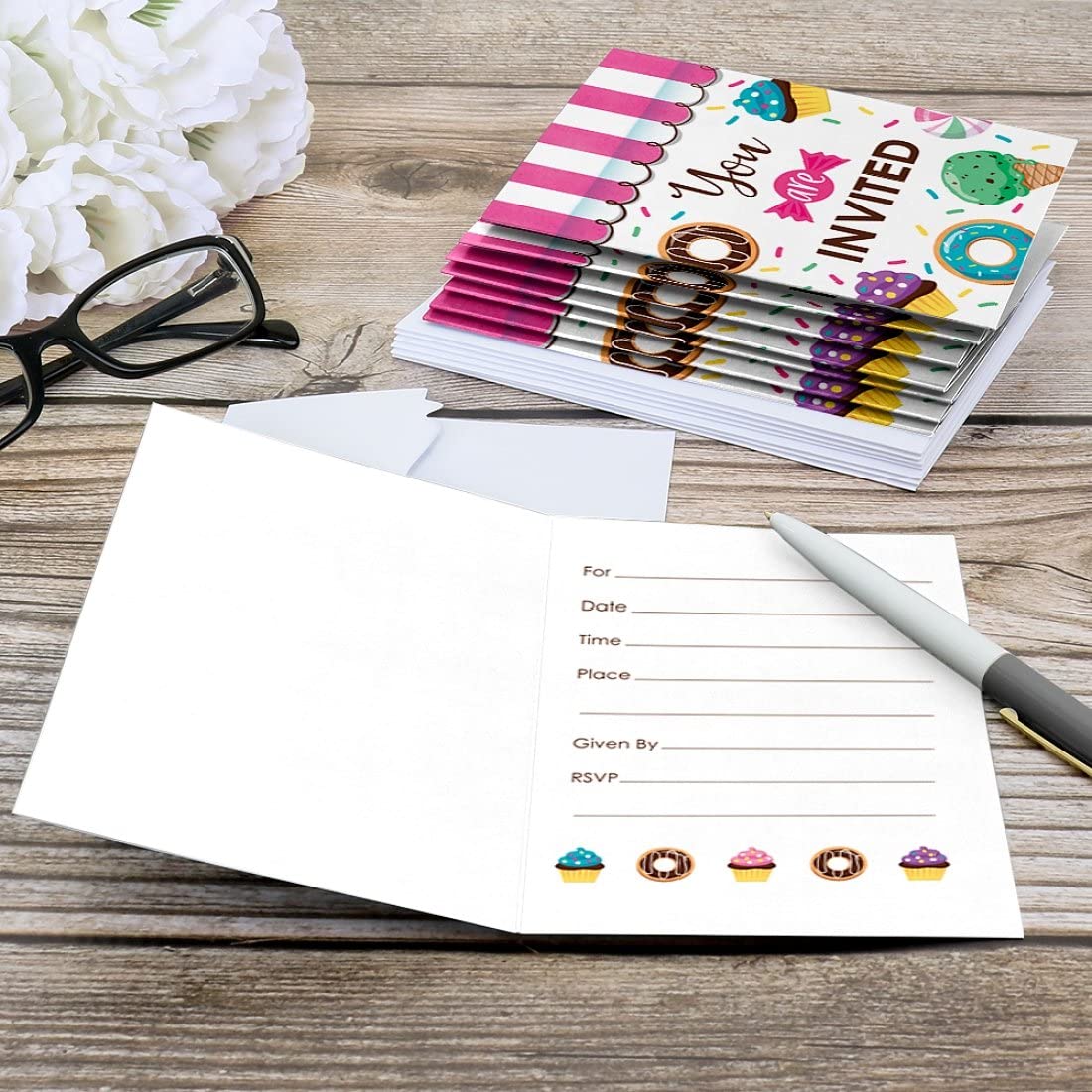 Sweet Shoppe - Fill In Candy and Bakery Birthday Party or Baby Shower Invitations (8 count) is backordered and will ship as soon as it is back in stock.