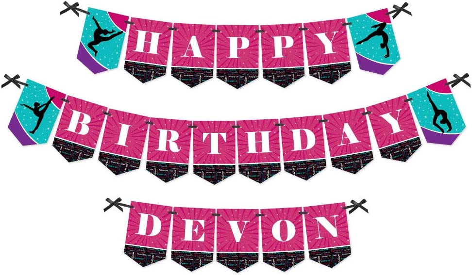 Personalized Tumble, Flip & Twirl - Gymnastics - Custom Birthday Party Bunting Banner & Decorations - Happy Birthday Custom Name Banner is backordered and will ship as soon as it is back in stock.