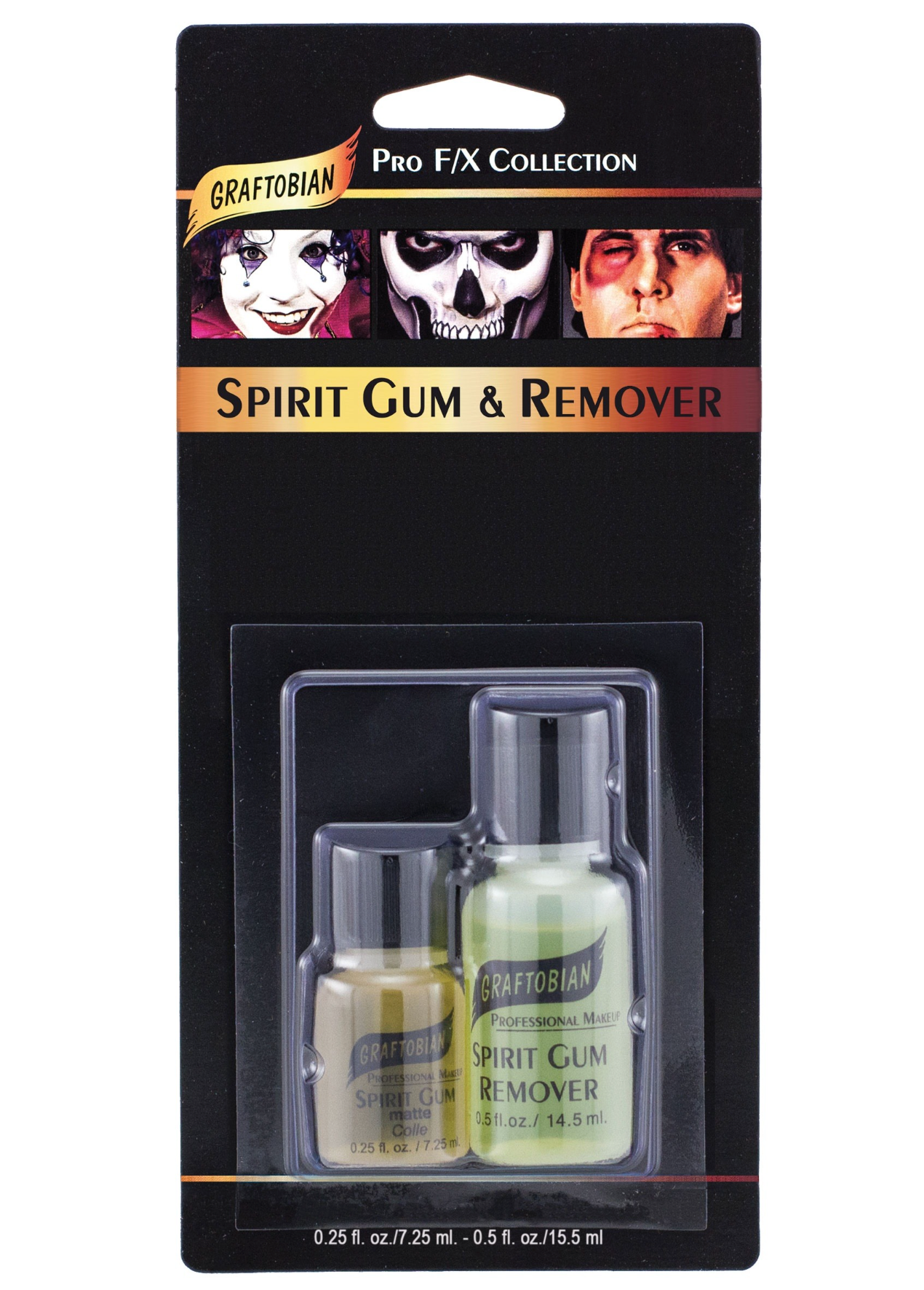 With this set, you'll receive both the spirit gum and a bottle of gum remover to make clean up easier than ever. All you need to do to attach fake hair, a prosthetic, or latex accessory to your skin is apply the gum with an application sponge or finger, wait twenty seconds until the gum is tacky, then press the hair or latex to the gum. Use a cotton swab to apply the remover when you want to clean up and you're back to your old self.