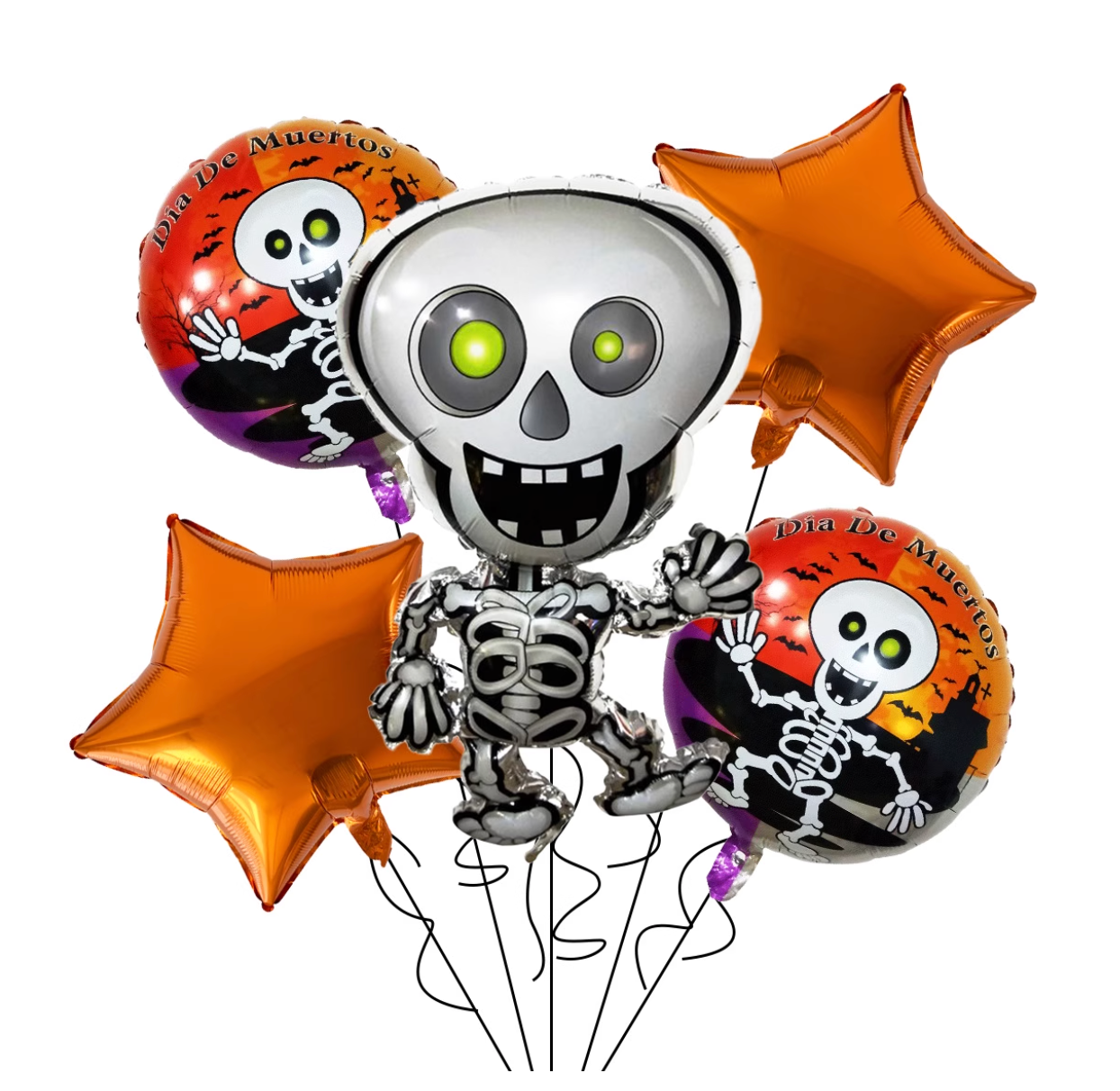 Halloween Balloons - Skeleton Balloon Bouquet - 5 Balloons - With Helium is backordered and will ship as soon as it is back in stock.