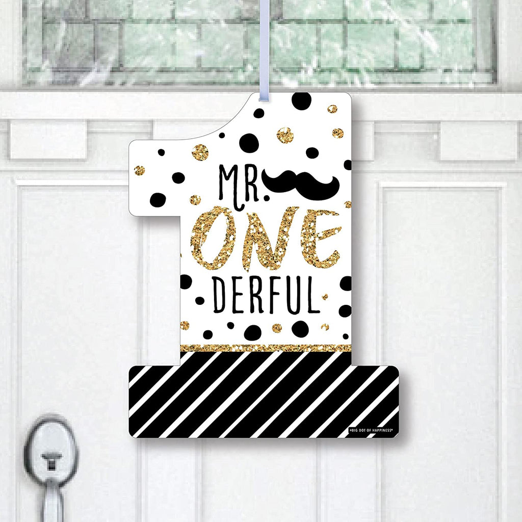 1st Birthday Little Mr. Onederful - Hanging Porch Boy First Birthday Party Outdoor Decorations - Front Door Decor - 1 Piece Sign