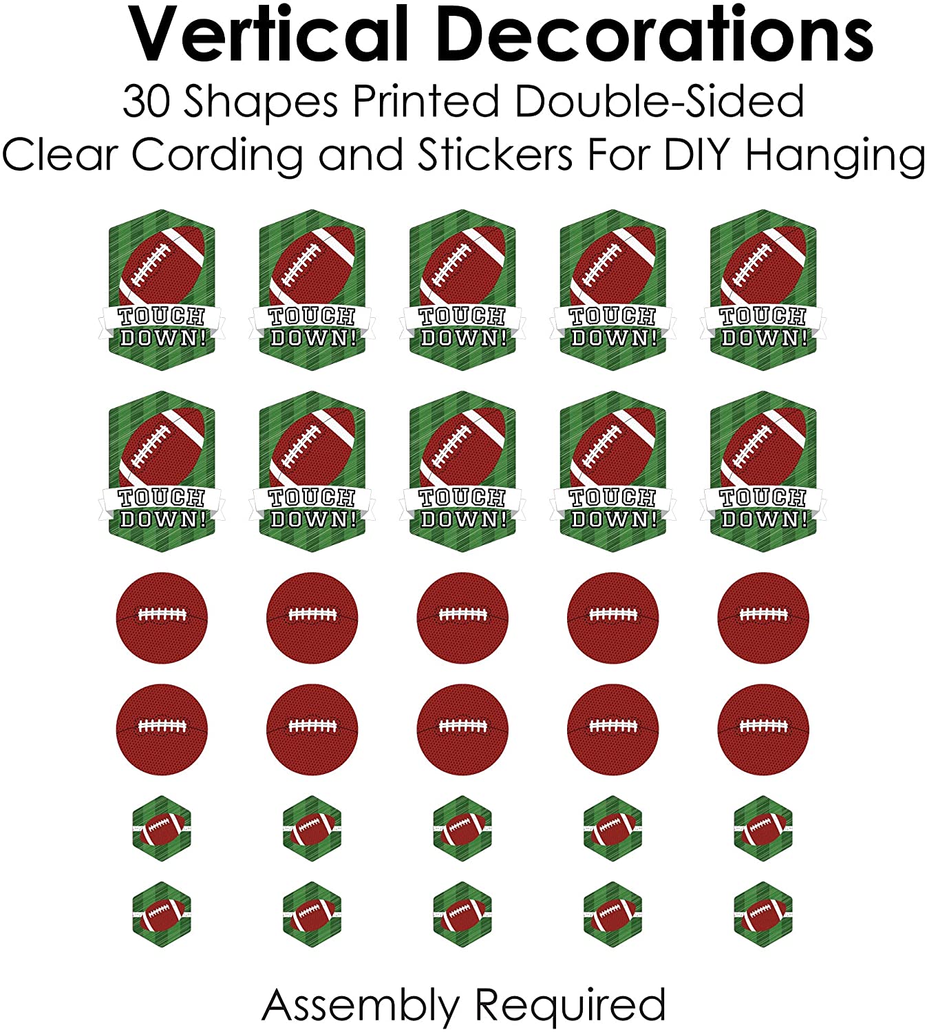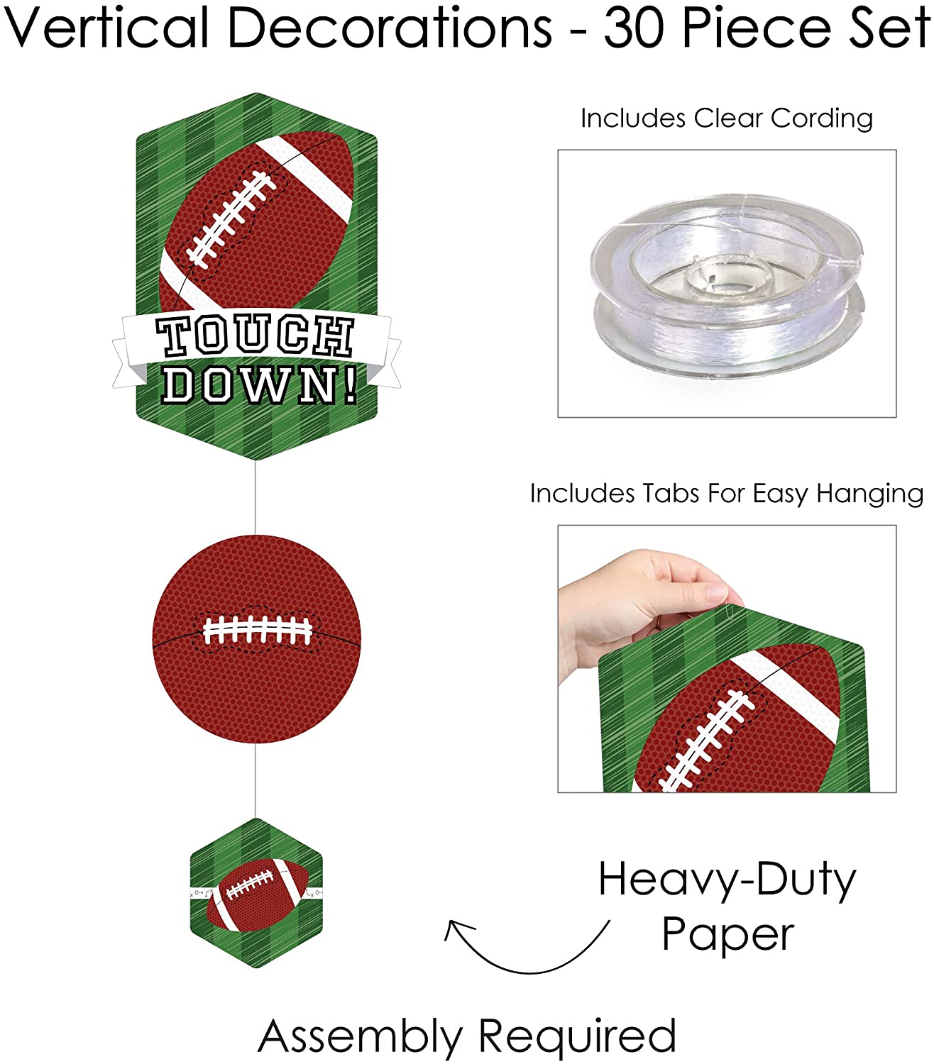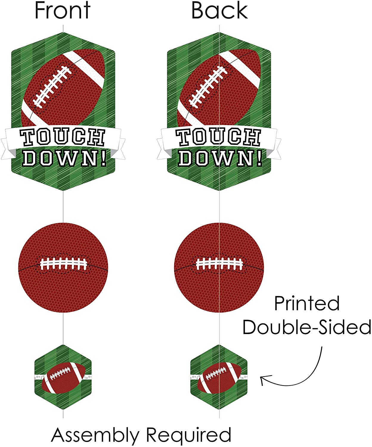 End Zone - Football - Baby Shower or Birthday Party DIY Dangler Backdrop - Hanging Vertical Decorations - 30 Pieces is backordered and will ship as soon as it is back in stock.