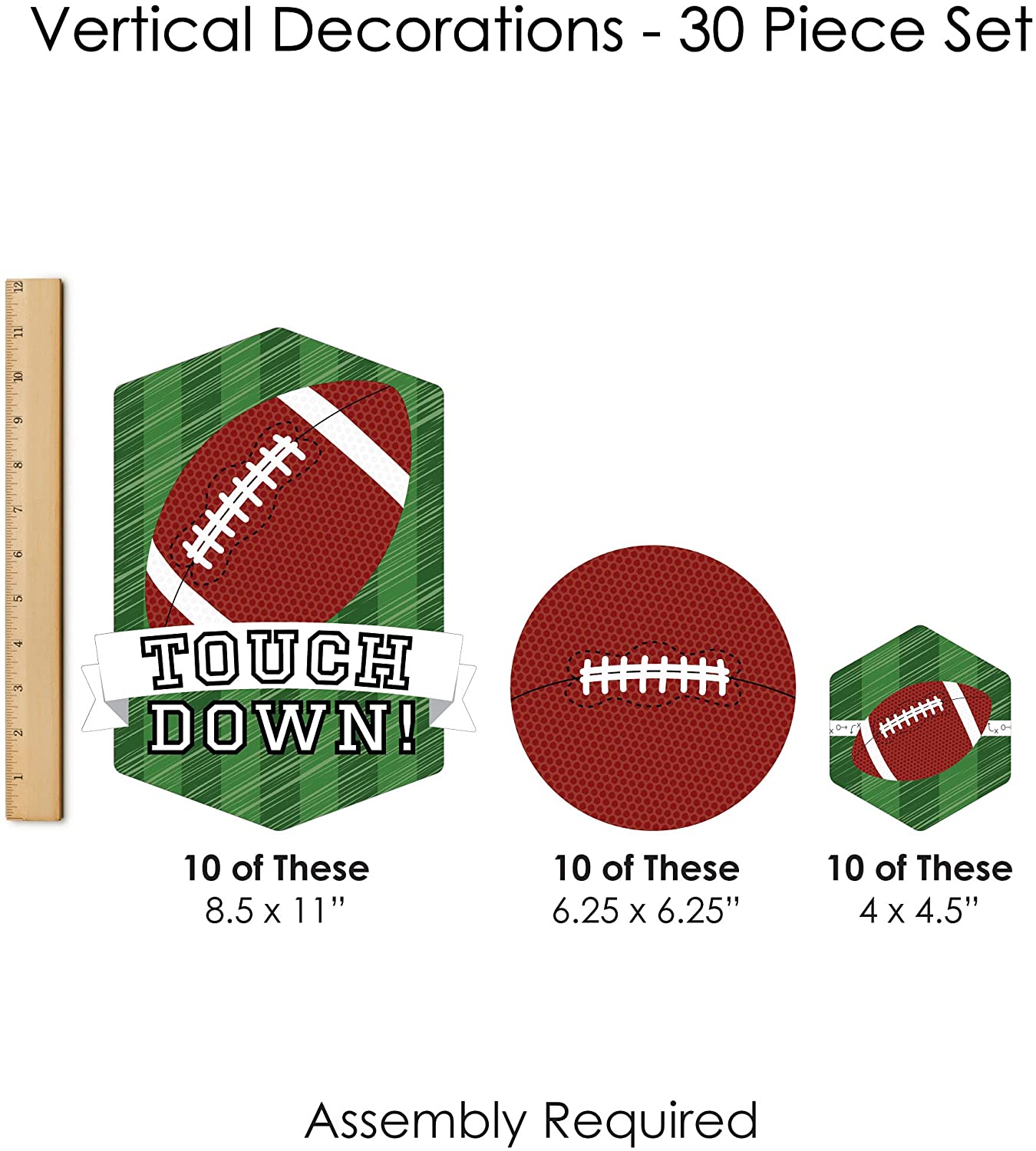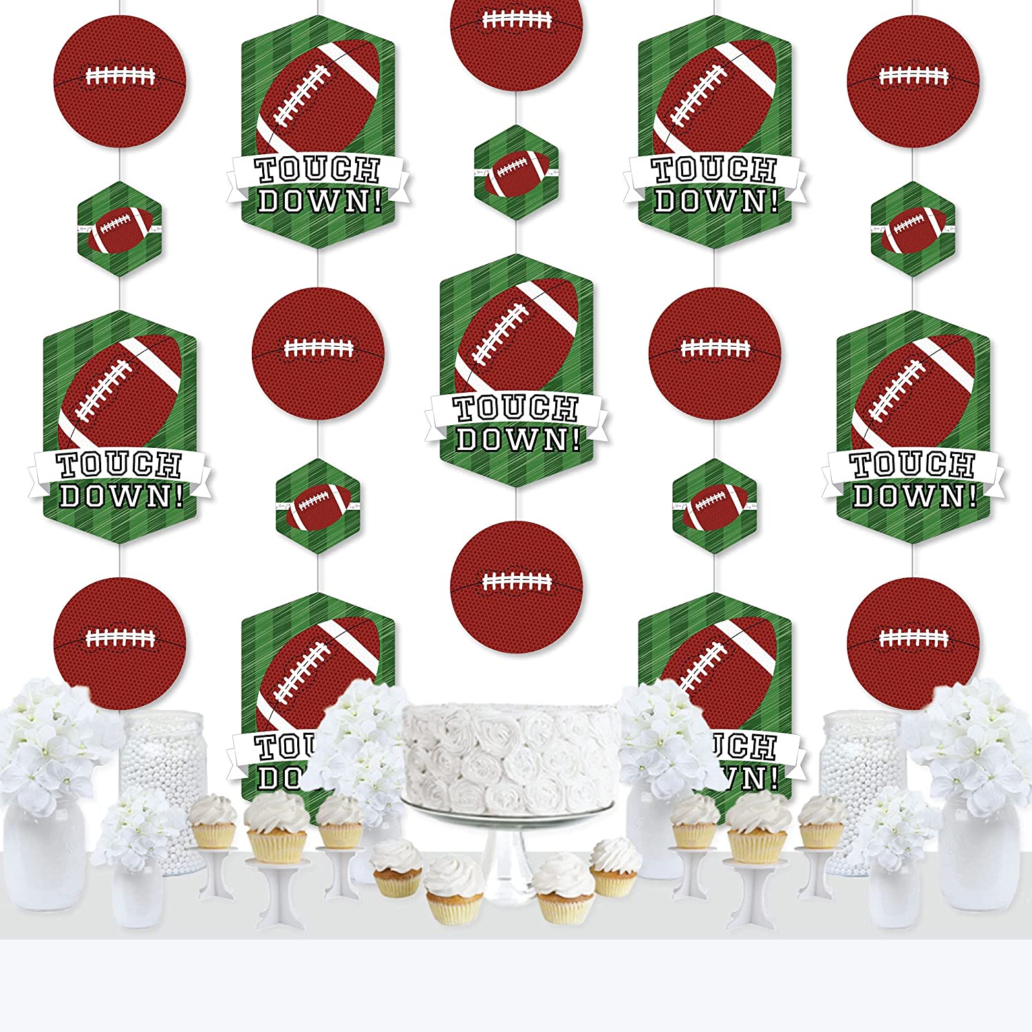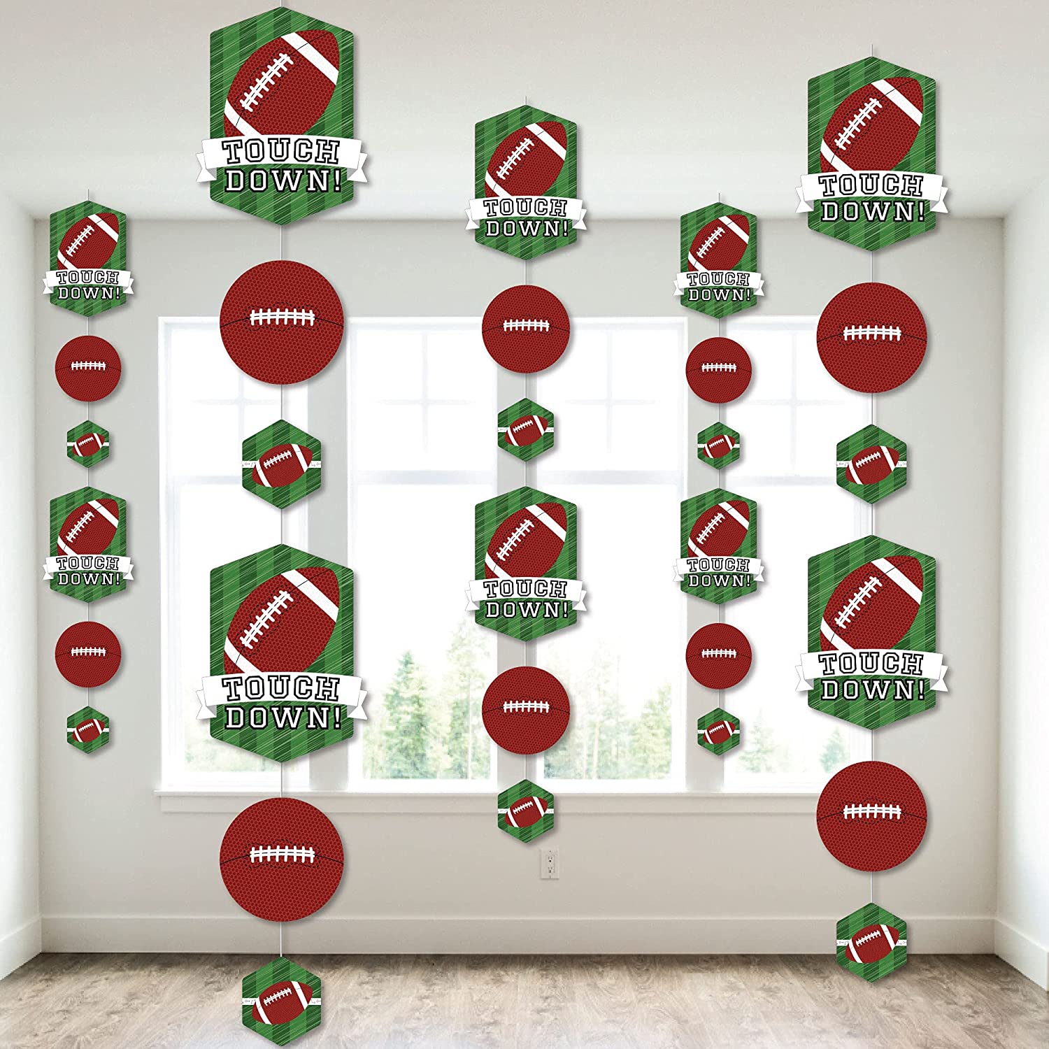 End Zone - Football - Baby Shower or Birthday Party DIY Dangler Backdrop - Hanging Vertical Decorations - 30 Pieces is backordered and will ship as soon as it is back in stock.