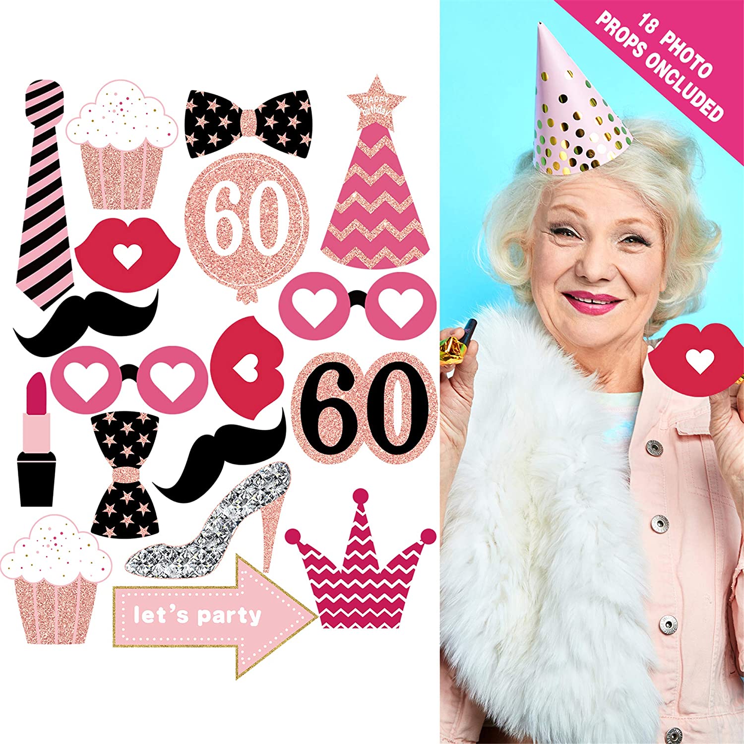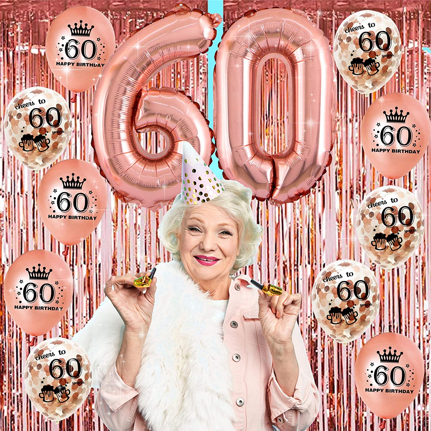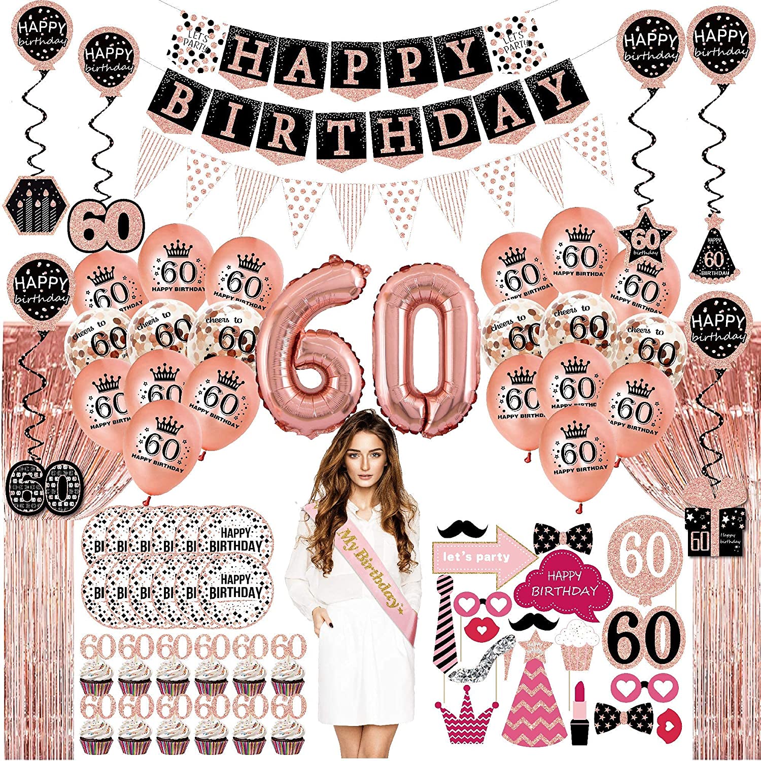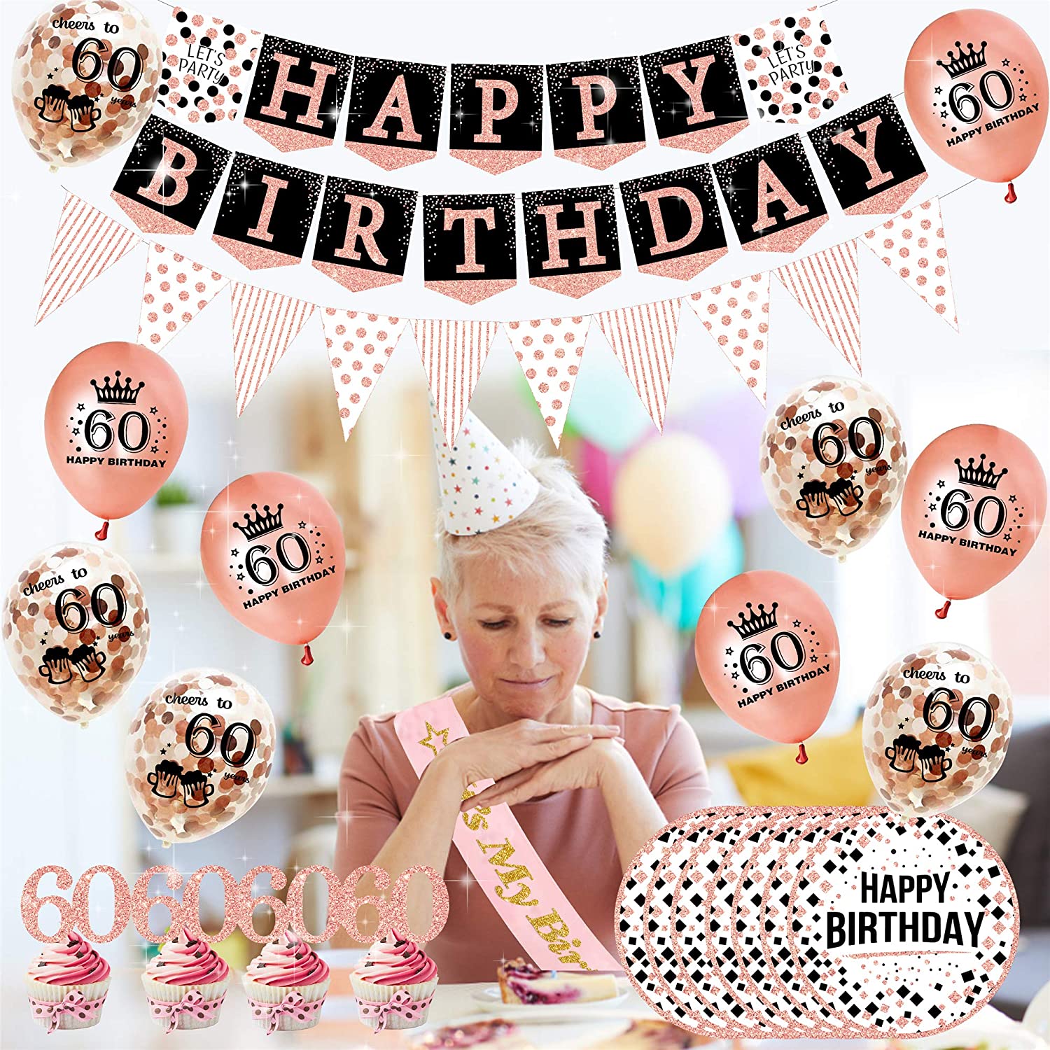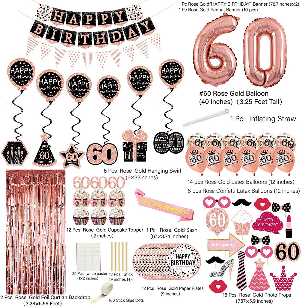 60th Birthday Rose Gold Decorations (76pack)