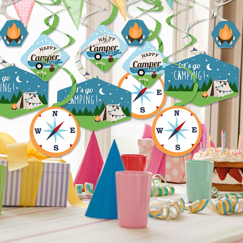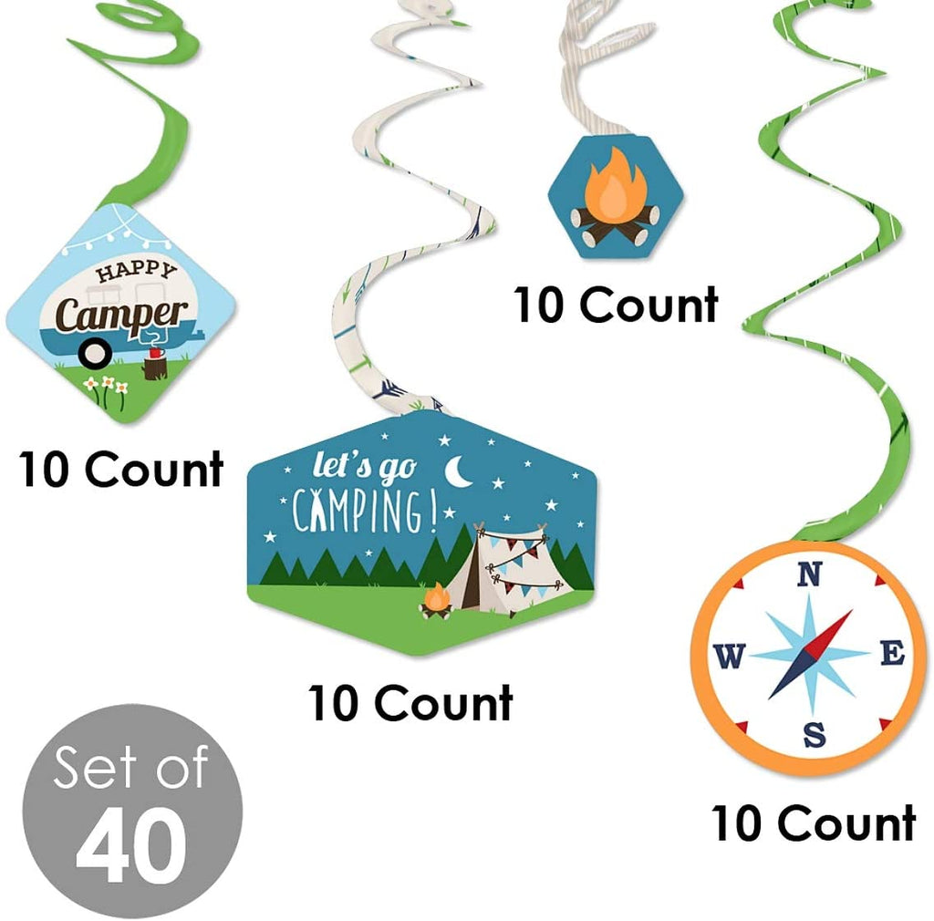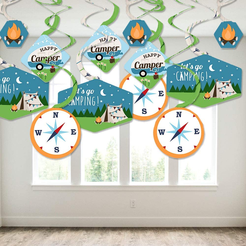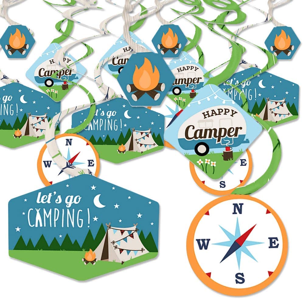 Happy Camper - Camping Baby Shower or Birthday Party Hanging Decor - Party Decoration Swirls - Set of 40 is backordered and will ship as soon as it is back in stock.