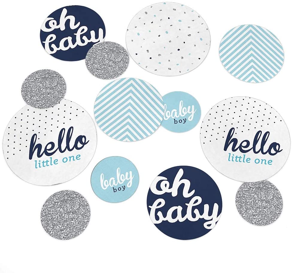 Hello Little One - Blue and Silver - Baby Shower Giant Circle Confetti - Boy Baby Shower Decorations - Large Confetti 27 Count is backordered and will ship as soon as it is back in stock.