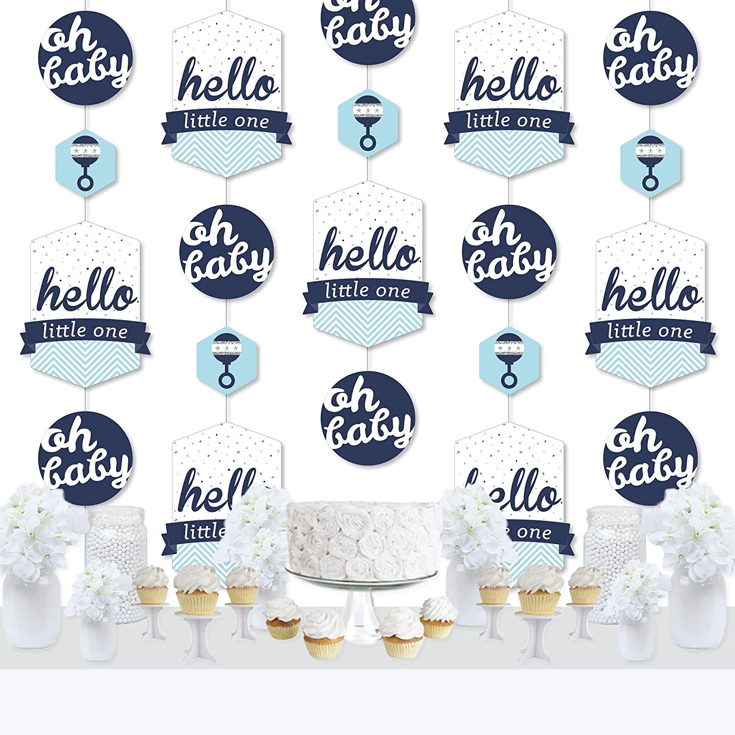 Hello Little One - Blue and Silver - Boy Baby Shower DIY Dangler Backdrop - Hanging Vertical Decorations - 30 Pieces is backordered and will ship as soon as it is back in stock.