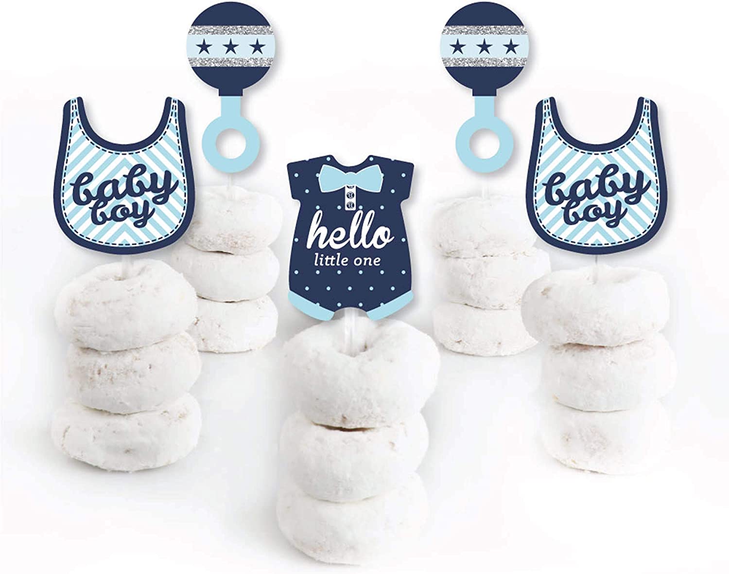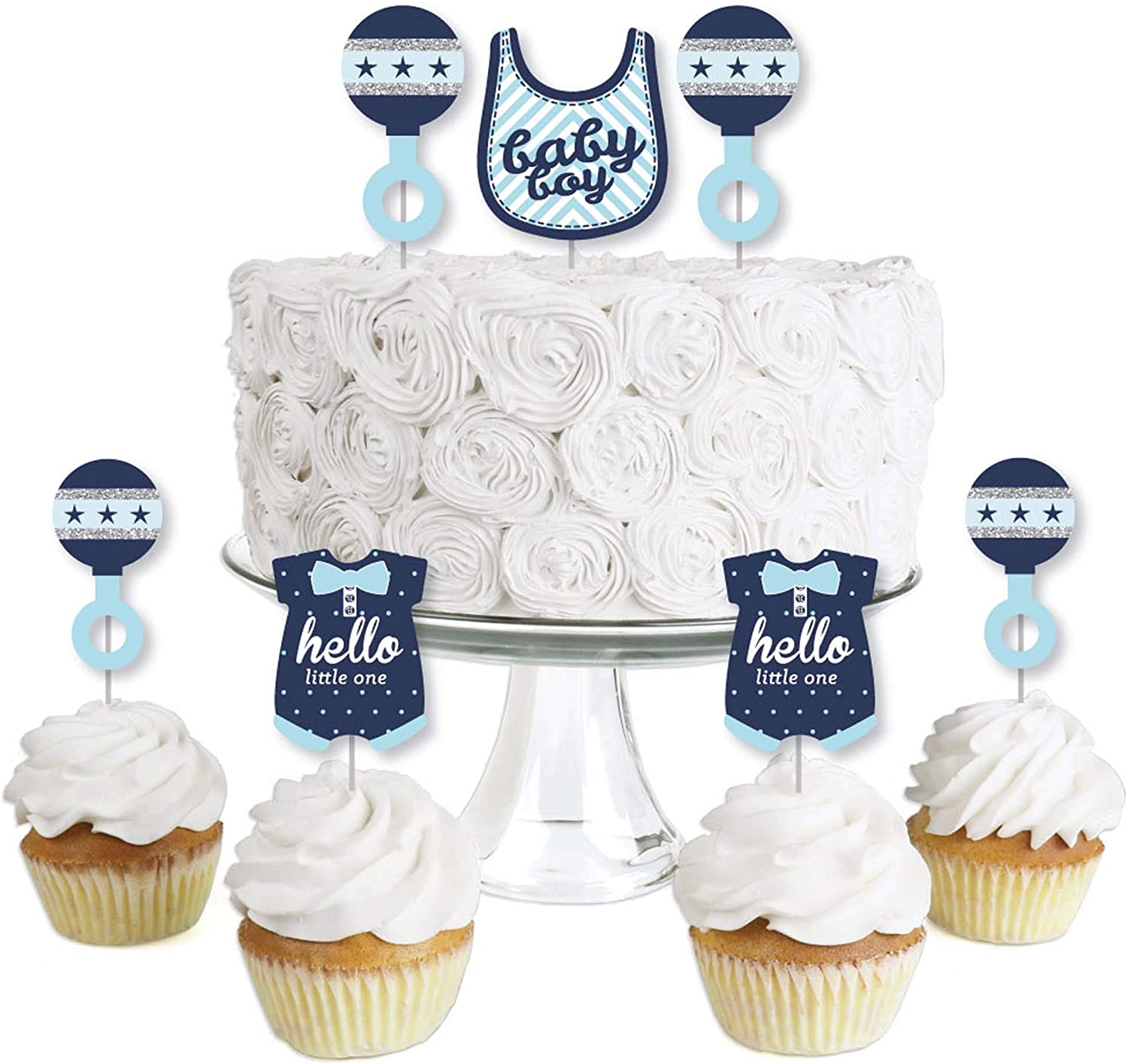 Hello Little One - Blue and Silver - Dessert Cupcake Toppers - Boy Baby Shower Clear Treat Picks - Set of 24 is backordered and will ship as soon as it is back in stock.