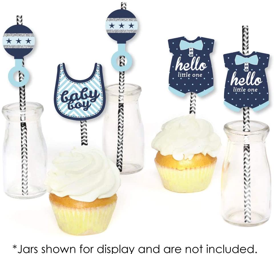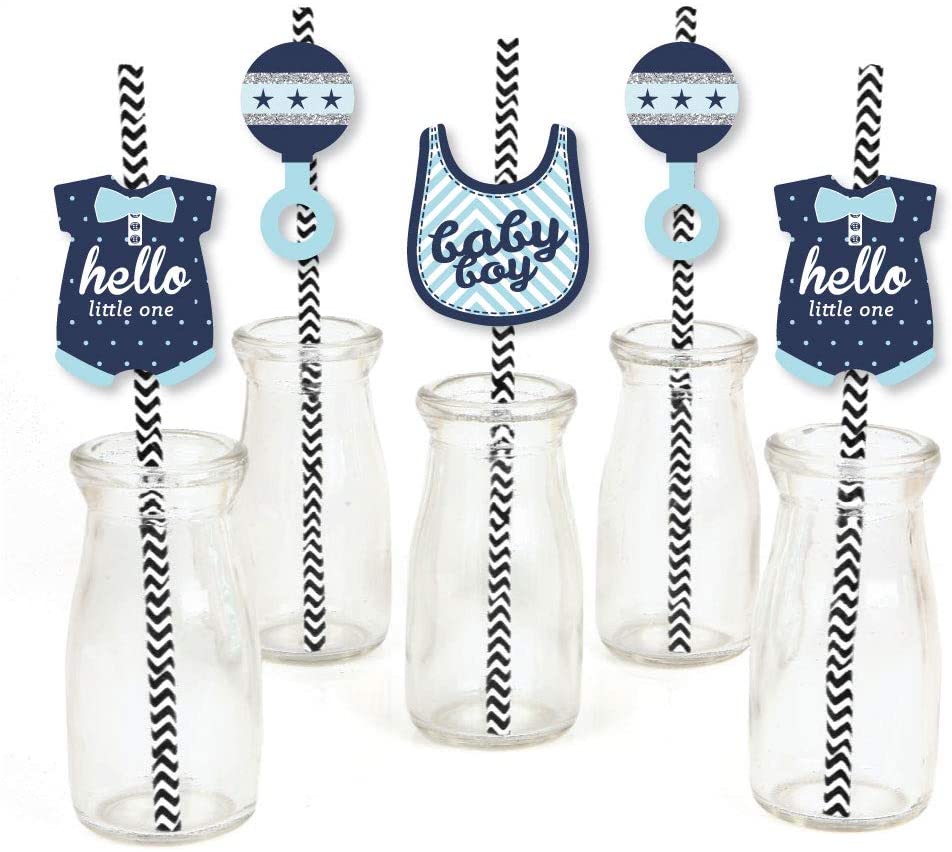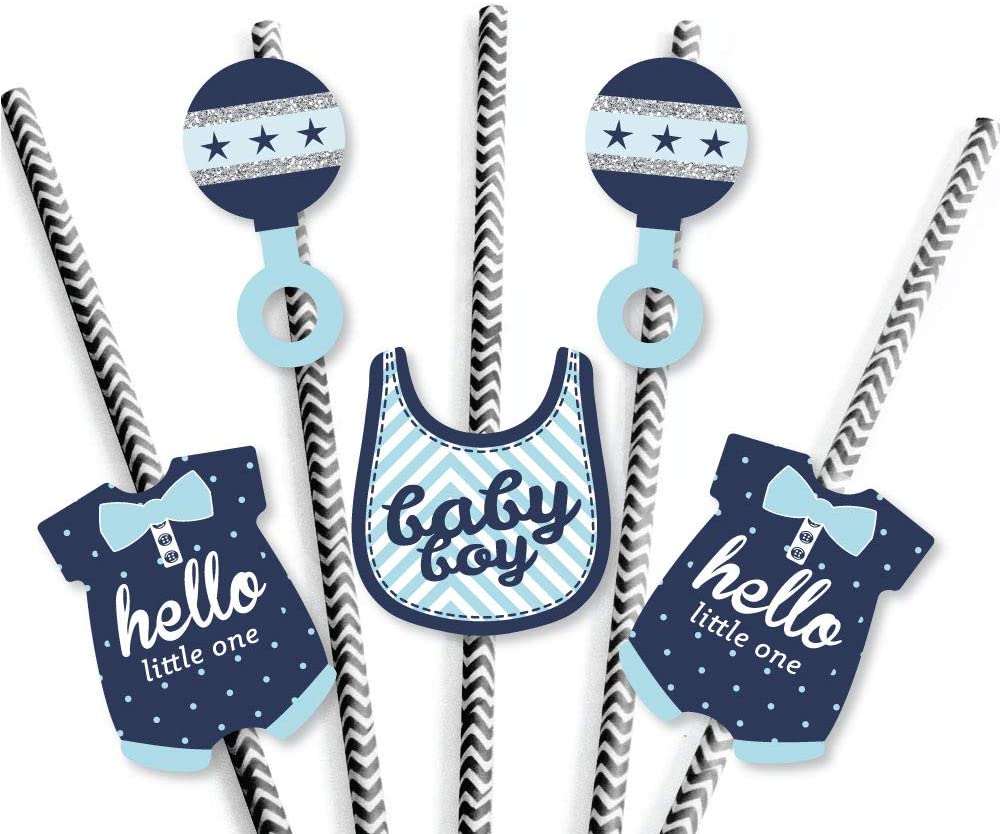Hello Little One - Blue and Silver Paper Straw Decor - Boy Baby Shower Striped Decorative Straws - Set of 24 is backordered and will ship as soon as it is back in stock.