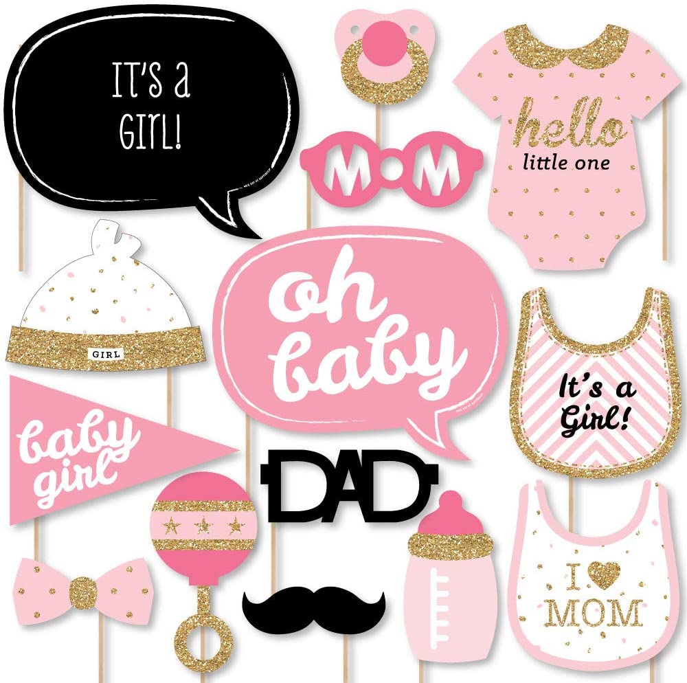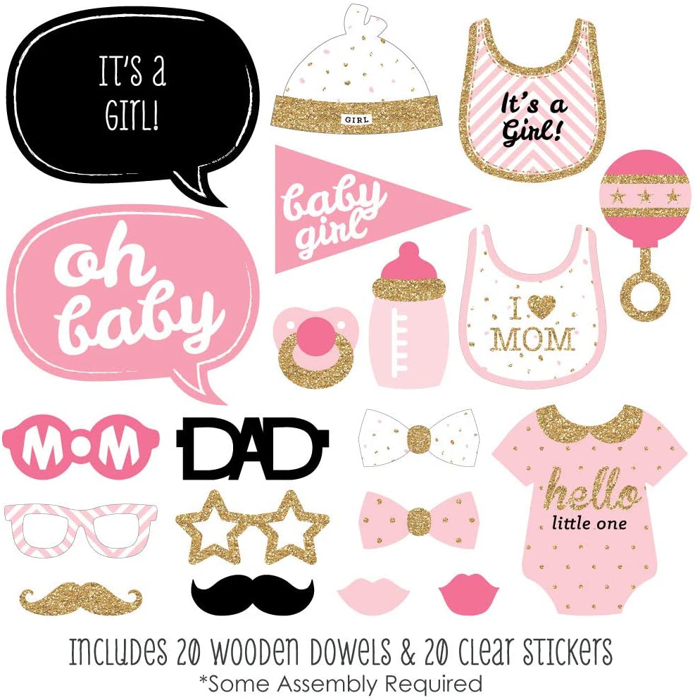 Hello Little One - Pink and Gold - Girl Baby Shower Photo Booth Props Kit - 20 Count is backordered and will ship as soon as it is back in stock.