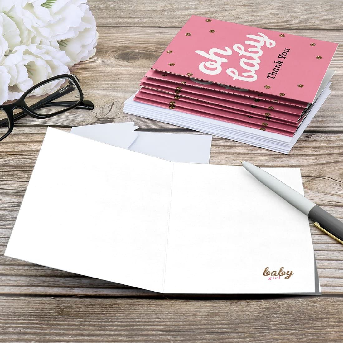 Hello Little One - Pink and Gold - Girl Baby Shower Thank You Cards (8 count) is backordered and will ship as soon as it is back in stock.