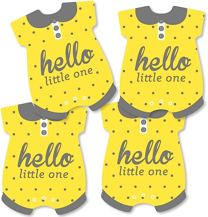 Hello Little One - Yellow and Gray - Baby Bodysuit Neutral Baby Shower Decorations DIY Party Essentials - Set of 20
