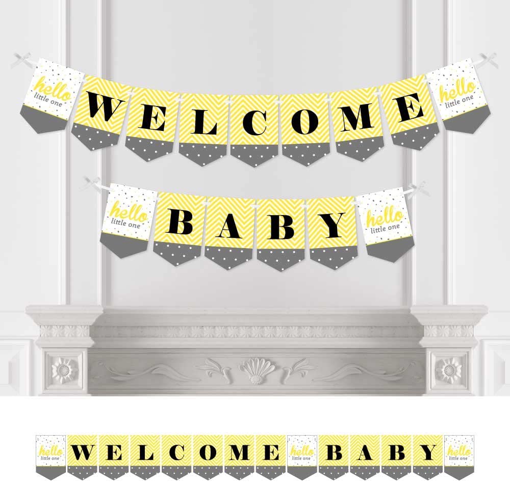 Hello Little One - Yellow and Gray - Neutral Baby Shower Decorations Party Banner
