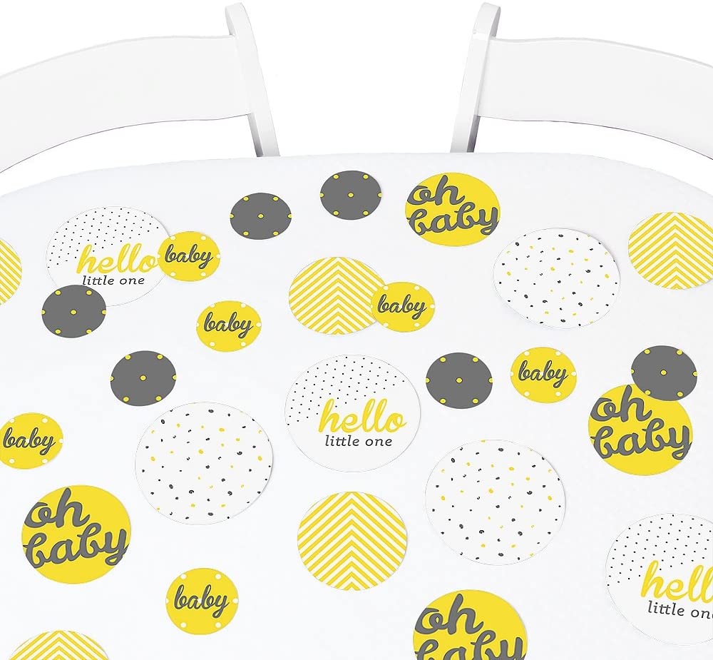 Hello Little One - Yellow and Gray - Neutral Baby Shower Giant Circle Confetti - Party Decorations - Large Confetti 27 Count
