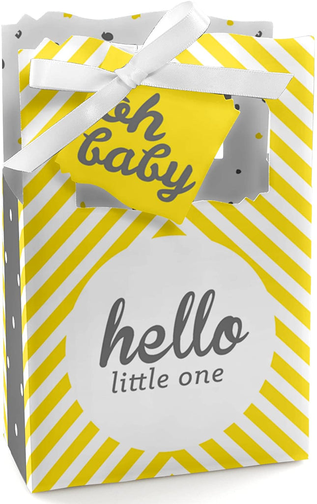 Hello Little One - Yellow and Gray - Neutral Baby Shower Party Favor Boxes - Set of 12