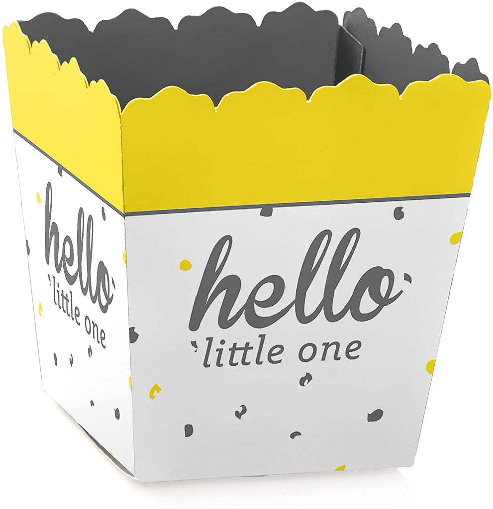 Hello Little One - Yellow and Gray - Neutral Baby Shower Favor Popcorn Treat Boxes - Set of 12