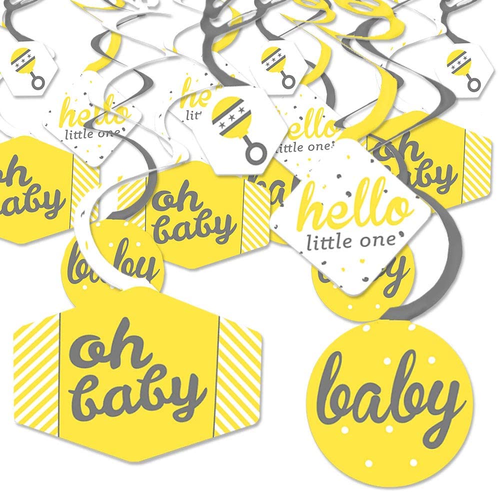 Hello Little One - Yellow and Gray - Neutral Baby Shower Hanging Decor - Party Decoration Swirls - Set of 40