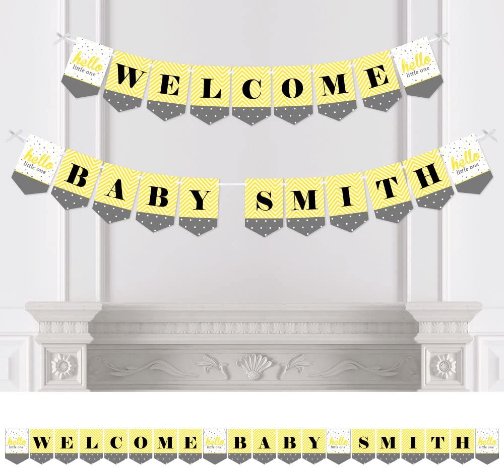 Custom Hello Little One - Yellow and Gray - Neutral Baby Shower - Personalized Baby Shower Bunting Banner and Decorations - Welcome Baby Custom Name Banner