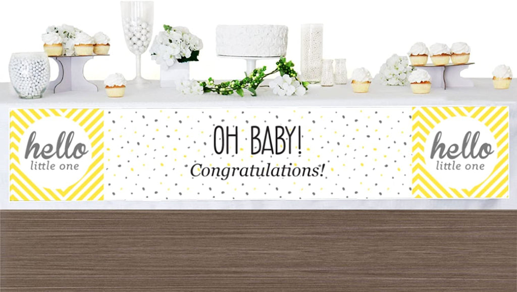 Hello Little One - Yellow and Gray - Neutral Baby Shower Decorations Party Banner is backordered and will ship as soon as it is back in stock.
