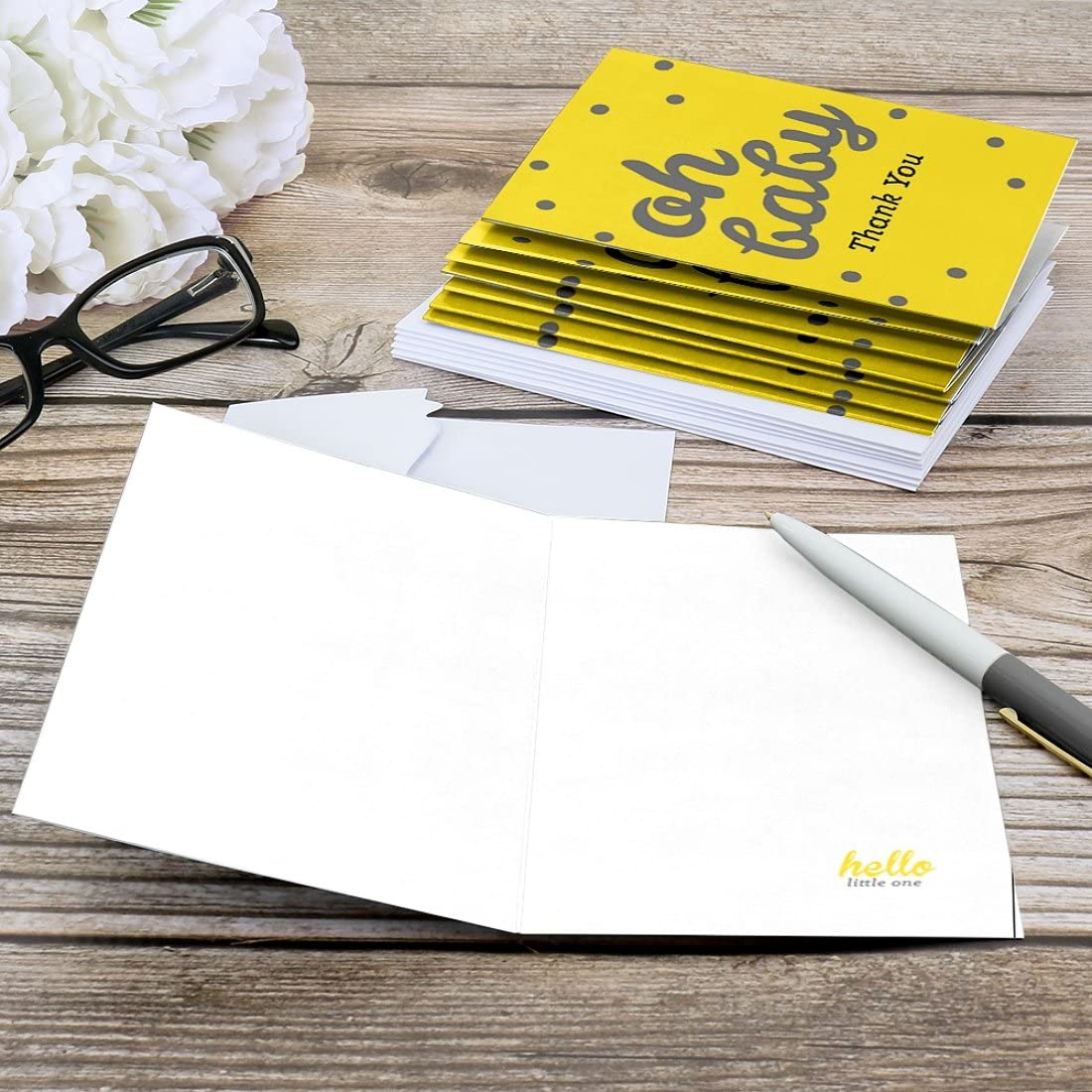 Hello Little One - Yellow and Gray - Neutral Baby Shower Thank You Cards (8 count) is backordered and will ship as soon as it is back in stock.