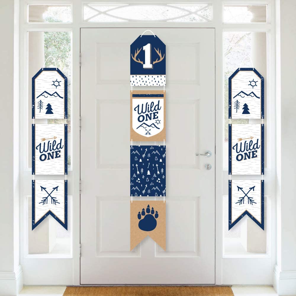 He’s a Wild One - Hanging Vertical Paper Door Banners - Deer 1st Birthday Party Wall Decoration Kit - Indoor Door Decor