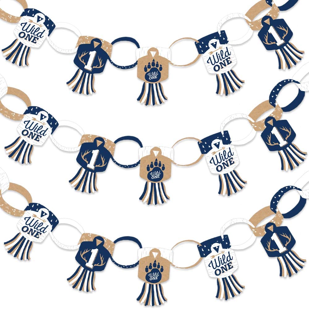 He’s a Wild One - 90 Chain Links and 30 Paper Tassels Decoration Kit - Deer 1st Birthday Party Paper Chains Garland - 21 feet