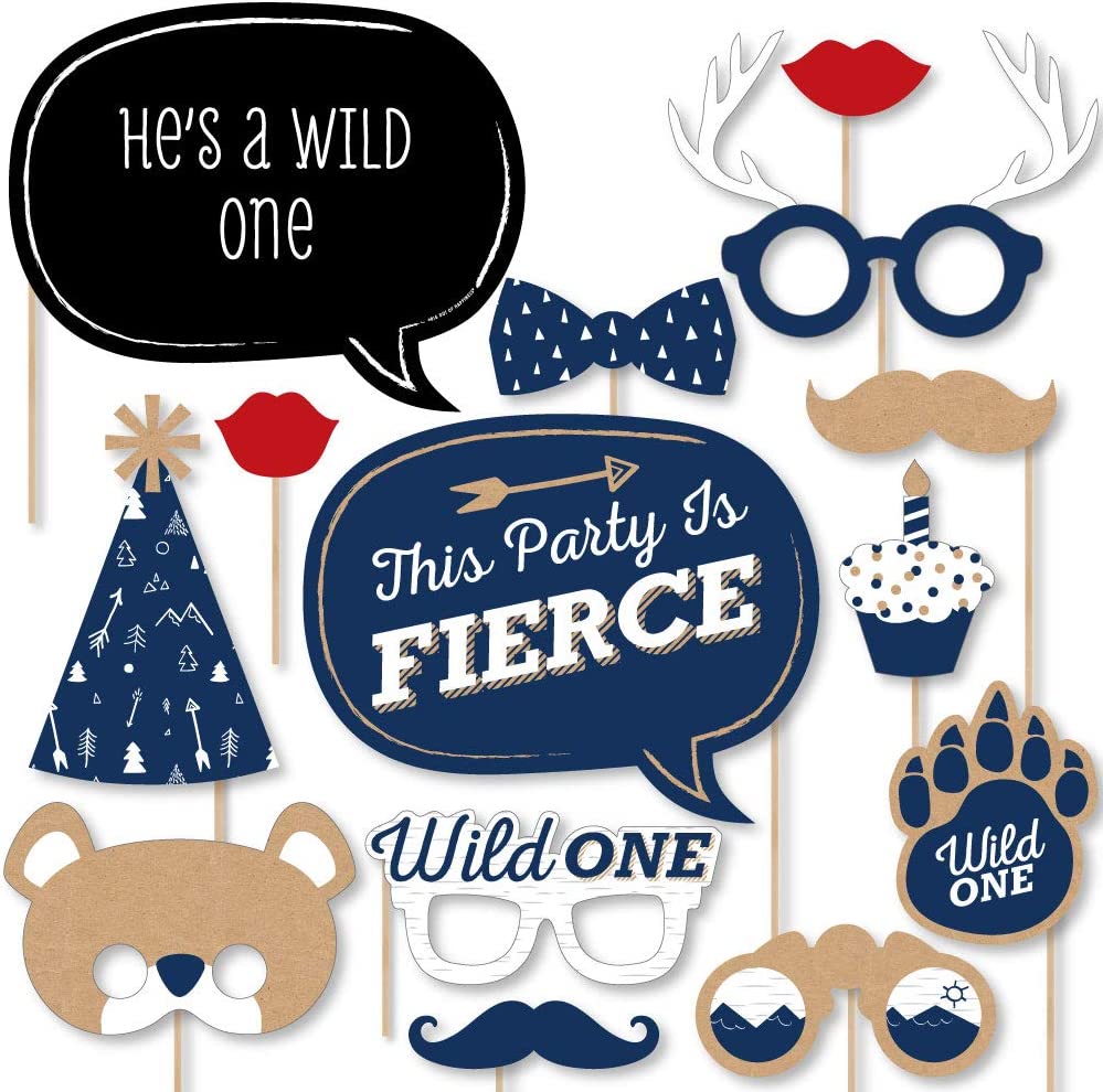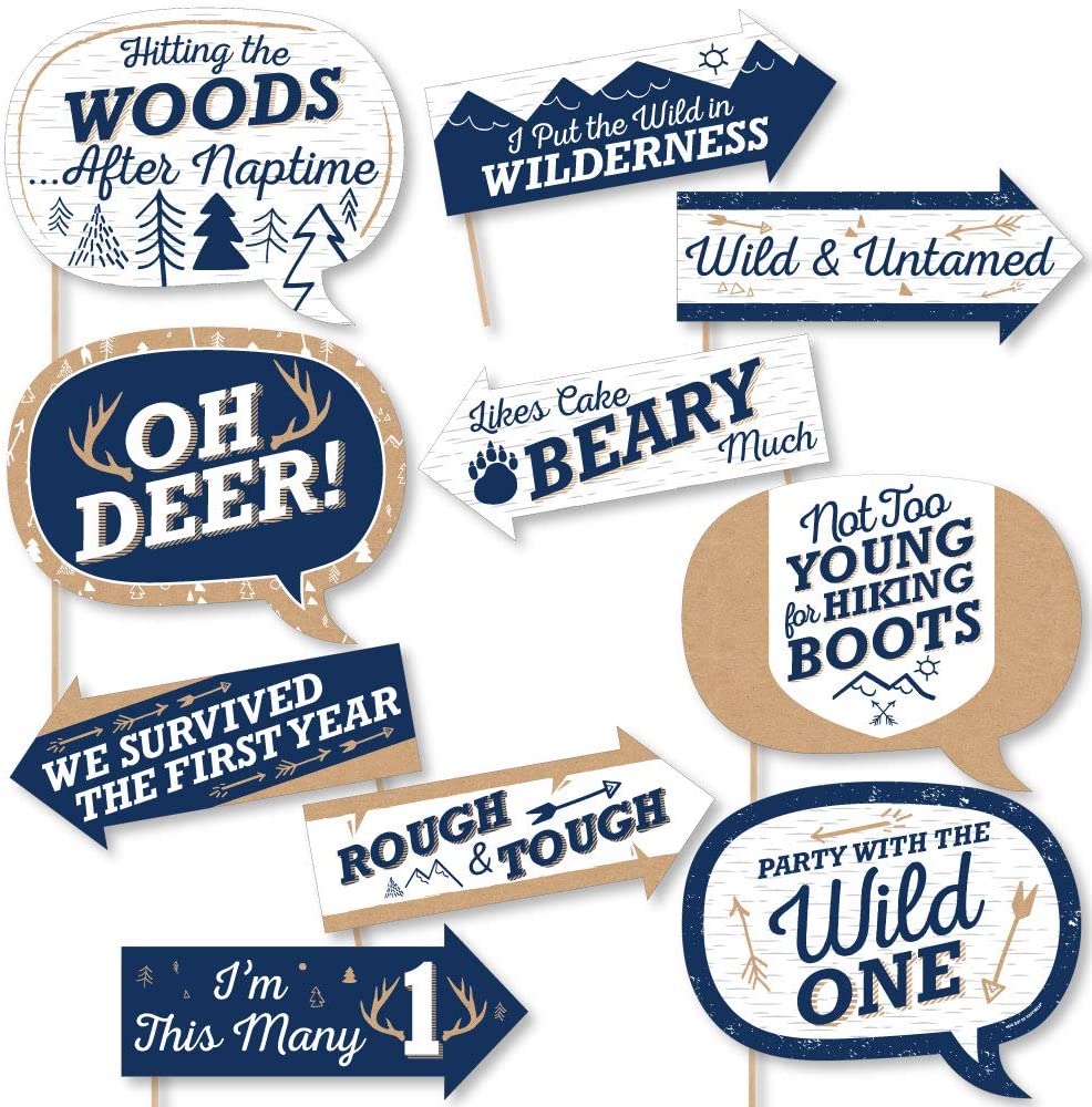 Funny He’s a Wild One - Deer 1st Birthday Party Photo Booth Props Kit - 10 Piece