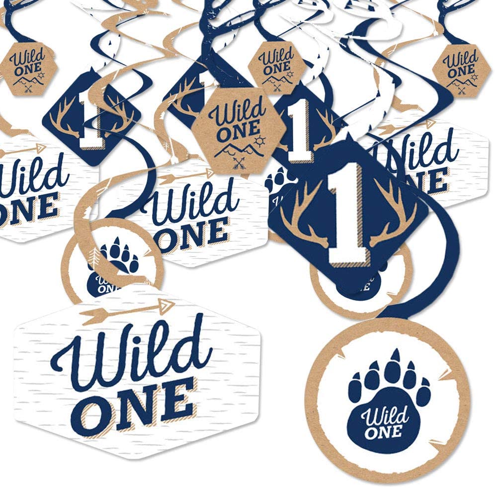 He’s a Wild One - Deer 1st Birthday Party Hanging Decor - Party Decoration Swirls - Set of 40