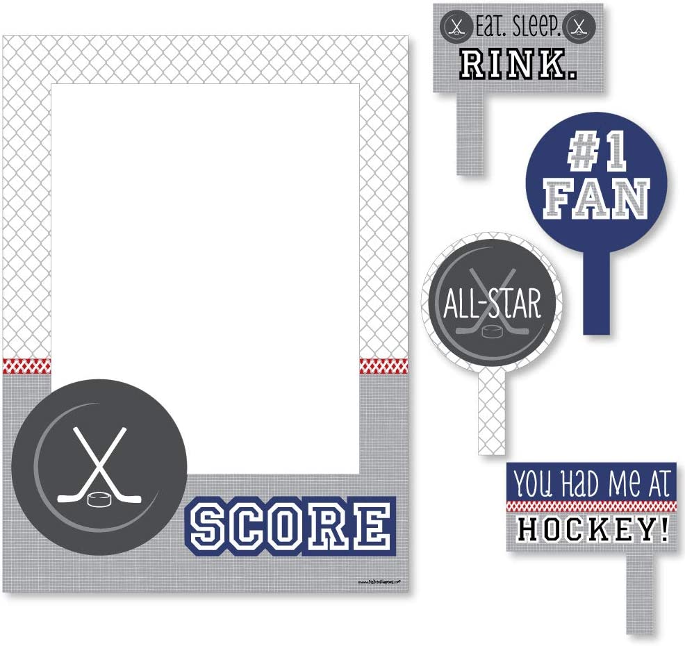 Shoots and Scores - Hockey - Birthday Party or Baby Shower Selfie Photo Booth Picture Frame and Props