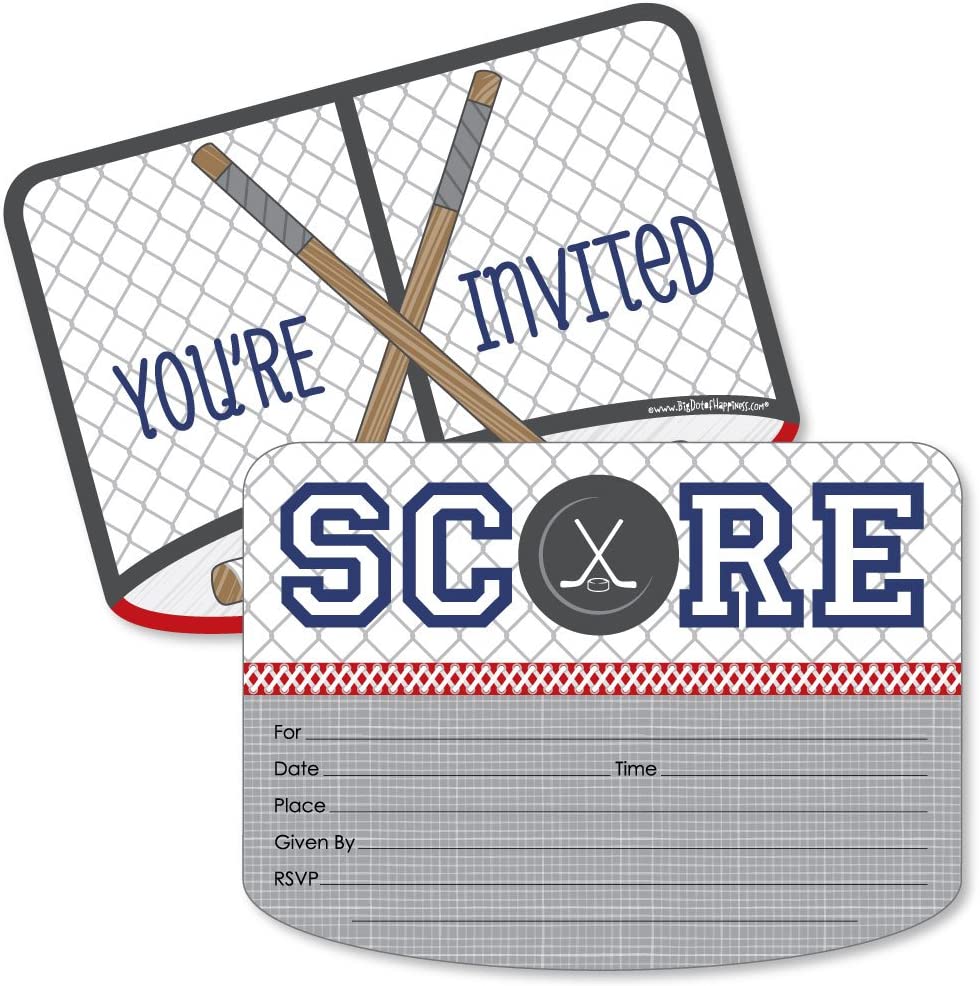 Shoots and Scores - Hockey - Shaped Fill-in Invitations - Baby Shower or Birthday Party Invitation Cards with Envelopes - Set of 12